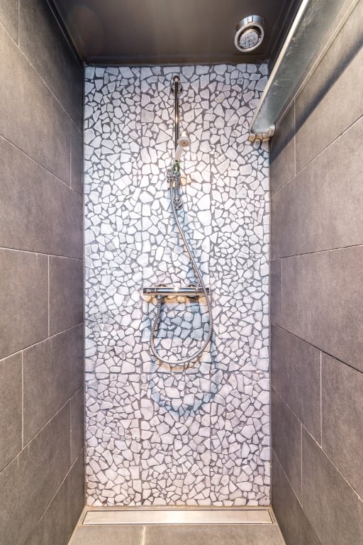 In de aanbouw zijn de keuken en badkamer gesitueerd. De keuken is heerlijk licht en de meer dan 3 meter lange wandopstelling is voorzien van diverse inbouwapparatuur: een gaskookplaat, afzuigkap, oven, vaatwasser, koelkast en een vriezer. De keuken staat in verbinding met de moderne badkamer, voorzien van een mooie inloopdouche en een wandcloset. De naastgelegen houten berging is vanaf de patio bereikbaar.
