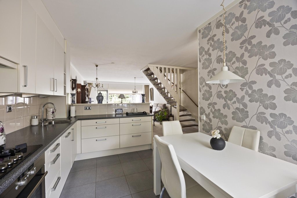 Begane grond: Entree, hal, toilet riante doorzonwoonkamer, de zeer ruime nette keuken biedt alle ruimte voor diegene die van lekker koken houdt. In de bijkeuken/berging zijn de aansluitingen voor het witgoed. De fraaie tuin op het westen is keurig aangelegd en onderhouden