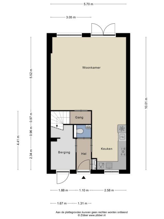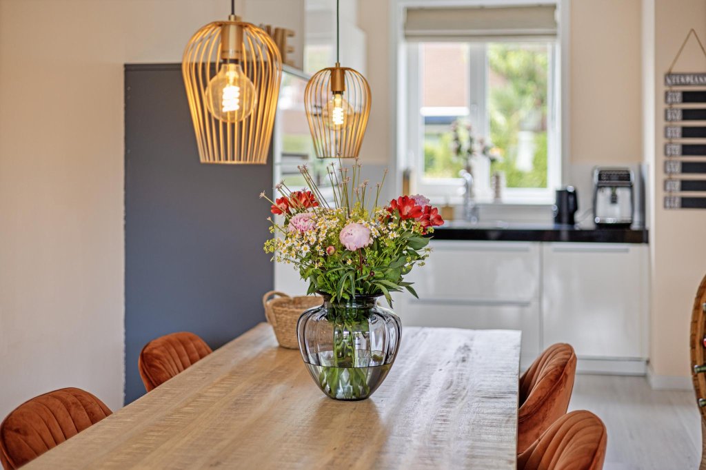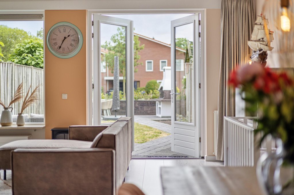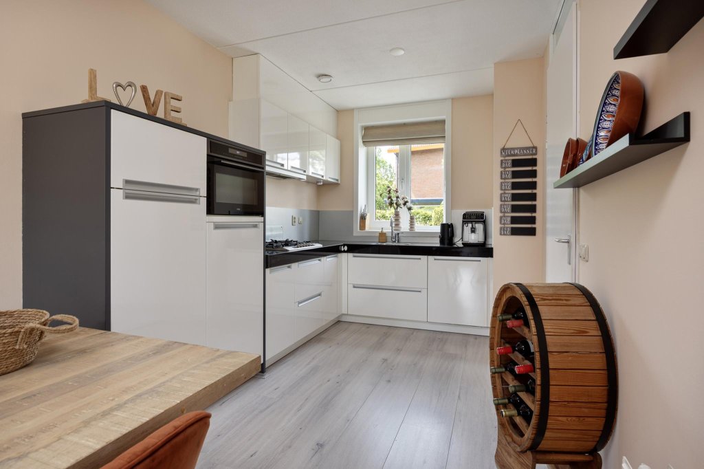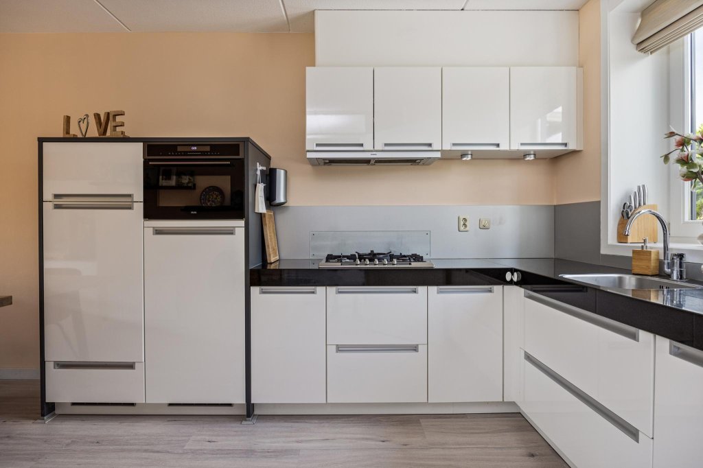 Entree/hal, met toegang tot de inpandige (fietsen)berging, modern toilet met fonteintje. Vanuit de hal kom je in de open keuken met natuurstenen werkblad voorzien van een combi-oven inductie kookplaat, afzuigkap, koelkast en vaatwasser. Vanuit de open keuken loopt u zo de uitgebouwde woonkamer met veel lichtinval in en biedt toegang tot de verzorgde en heerlijk vrij gelegen tuin aan het water.