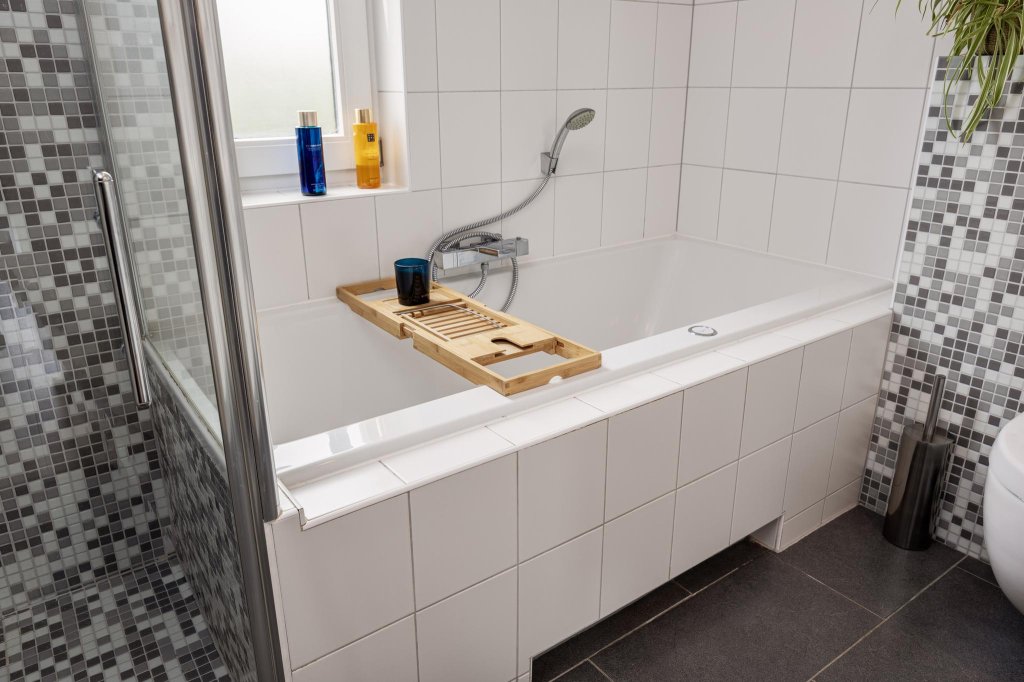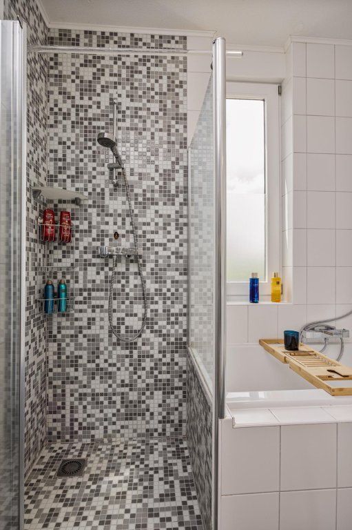 De overloop biedt toegang tot drie ruime slaapkamers voorzien van rolluiken en een badkamer met douche, toilet, wastafel en bad met airjets