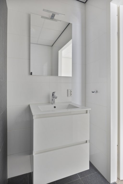 Het appartement is keurig afgewerkt met een laminaatvloer, stijlvolle gordijnen, rolgordijnen en lampen. De open keuken is voorzien van moderne inbouwapparatuur, waaronder een vaatwasser, afzuigkap, inductiekookplaat, koelkast met vriesvak en een combimagnetron. De luxe badkamer beschikt over een zwevend toilet, een thermokraan, douchewand, betegeling tot aan het plafond en een luxe wastafel met onderkast.