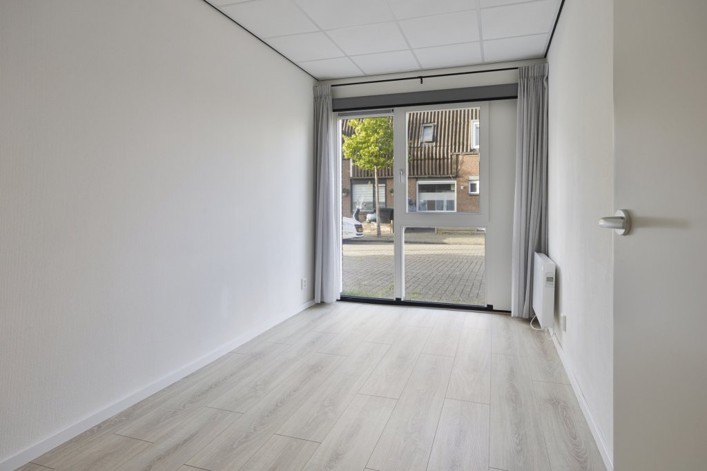 Begane grond: U komt de entree binnen met hal, garderobe, meterkast en toegang tot de badkamer, slaapkamers en woonkamer. De badkamer is inpandig en voorzien van een toilet, wastafel, aansluiting voor de wasmachine en douche. De 2 slaapkamers zijn variërend in grootte en zijn gelegen aan de straatzijde. Via de hal is er tevens toegang tot de woonkamer met openslaande deur deze is ook gelegen aan de straatzijde met open keuken. De open keuken is voorzien van alle inbouwapparatuur. Op de vloer ligt een nette laminaatvloer, tevens zijn alle ramen bekleed met gordijnen.