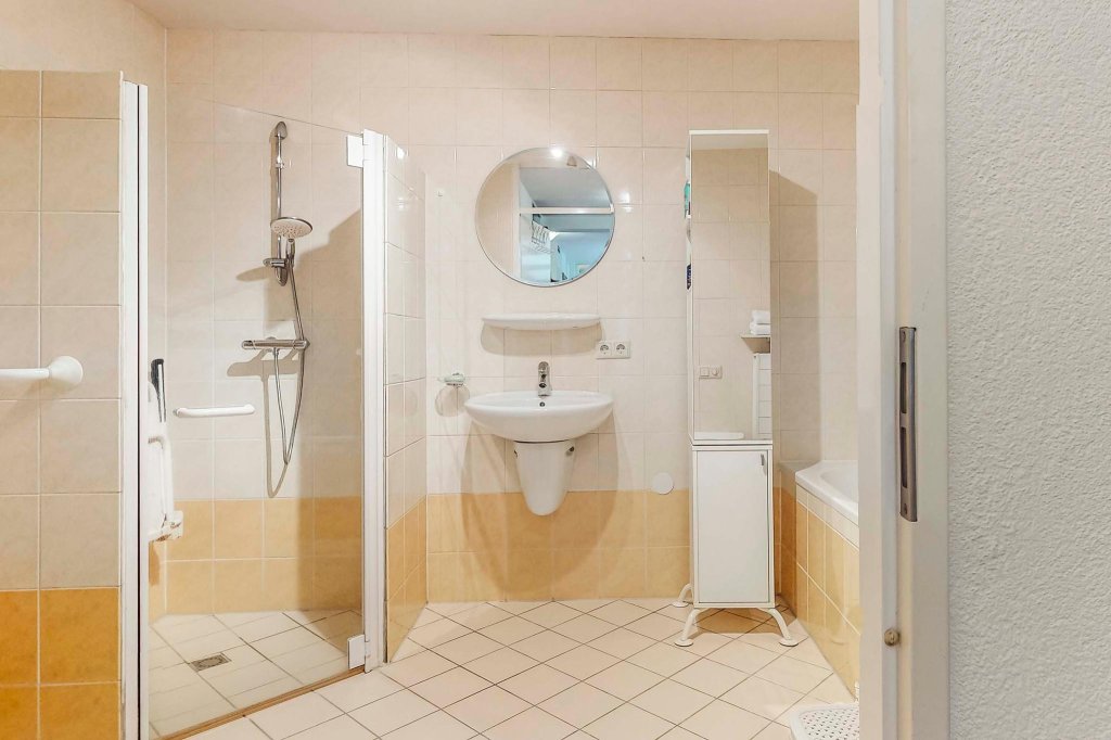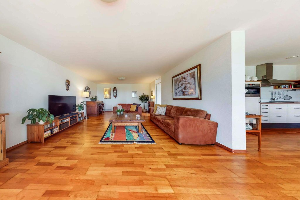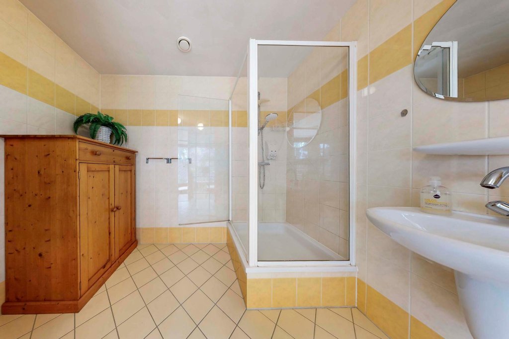 De woonkamer is zeer ruim, terug naar de hal, hier loopt u door naar de enorme ruime slaapkamer van bijna 22m2. De badkamer is voorzien van ligbad, aparte douche en toilet is zeer ruim, alles in fris zacht geel.