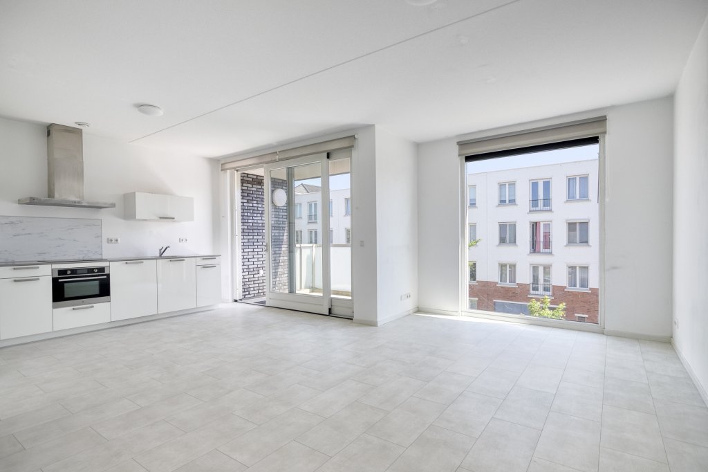 Wonen in het Europakwartier: zonnig balkon, vloerverwarming, twee slaapkamers. Bieden vanaf € 347.500,-. k.k.