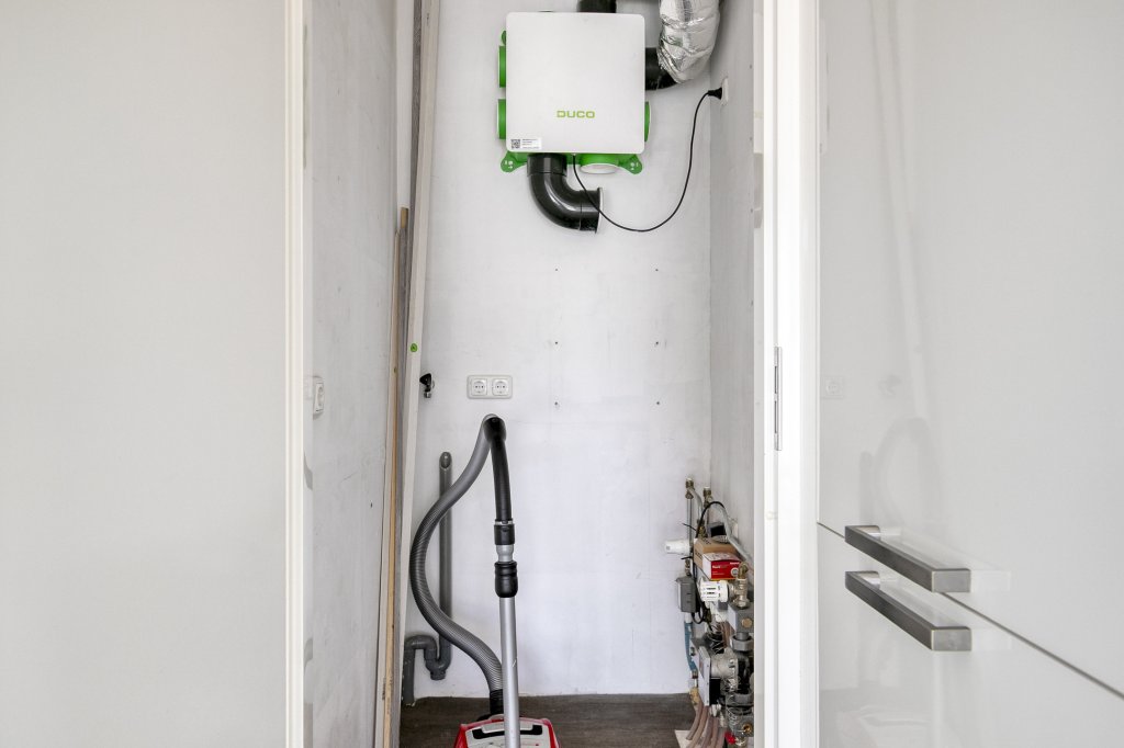 Verder is er een praktische bergruimte met aansluiting voor een wasmachine en eventueel