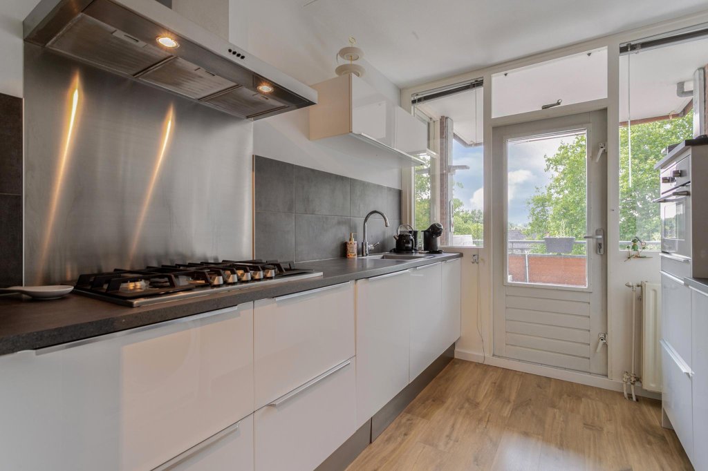Het gehele appartement is voorzien van een warm kwalitatief goed laminaat, de ramen zijn voorzien van maatwerk horren en raamdecoratie.