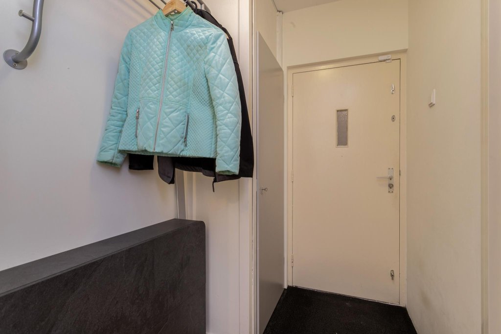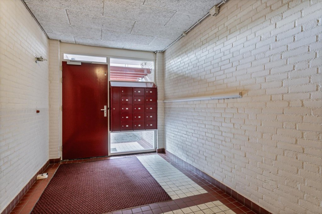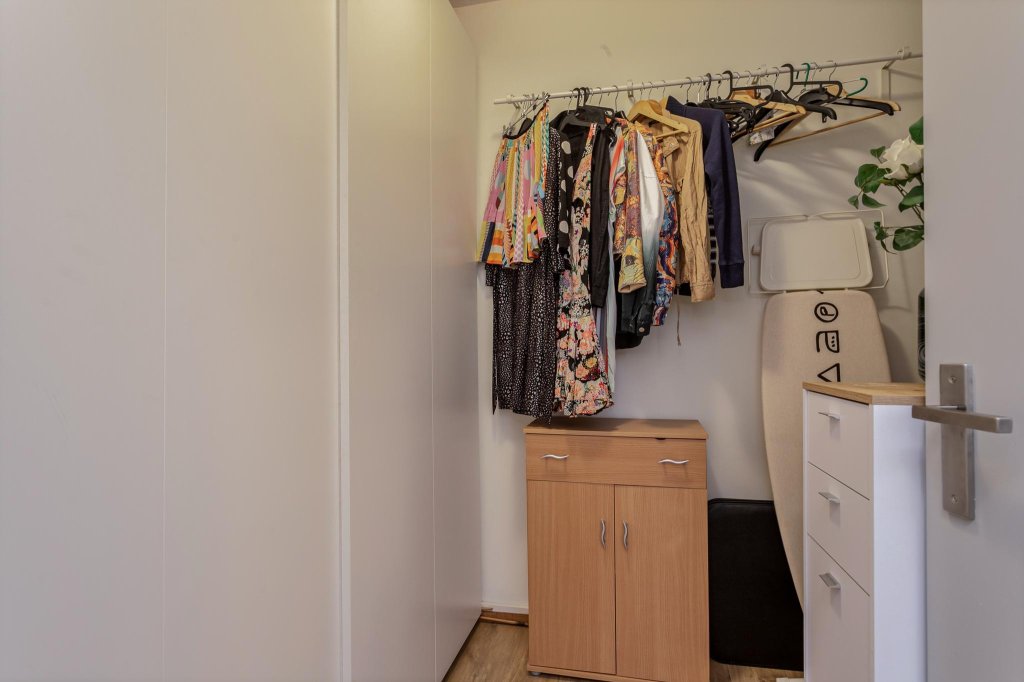 Kom binnen in dit ruime en sfeervolle appartement, direct links is een grote bergruimte, hier is voldoende opbergruimte gecreëerd door een grote schuifwandkast te plaatsen.