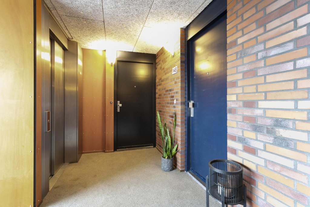 Stap uit de lift en direct sta je voor de deur van nummer 148, hoe prettig is dat!