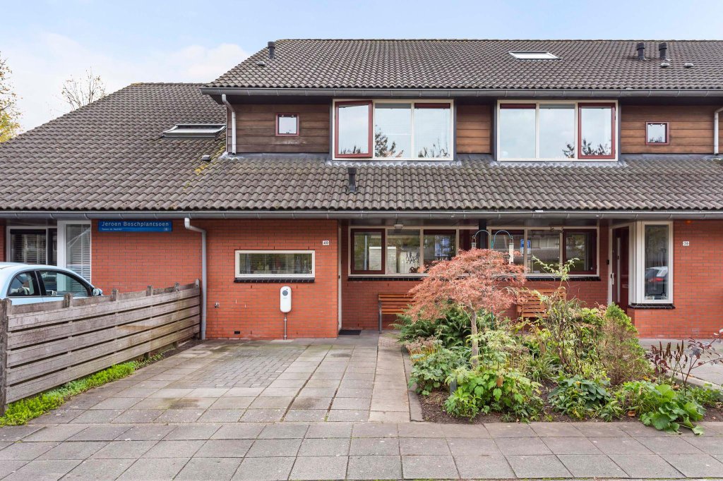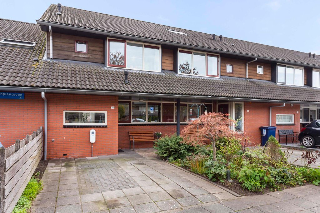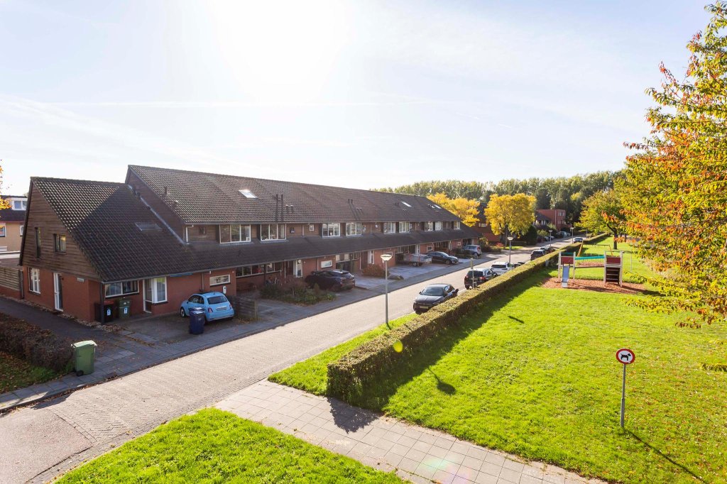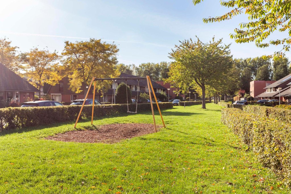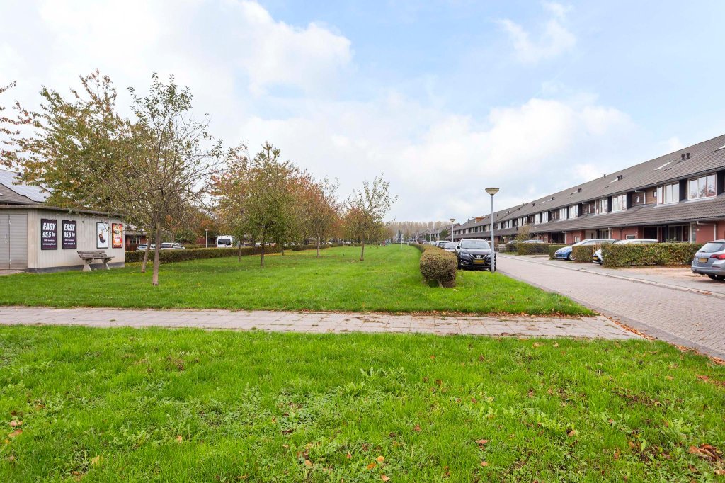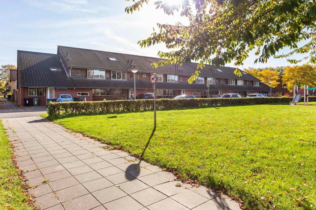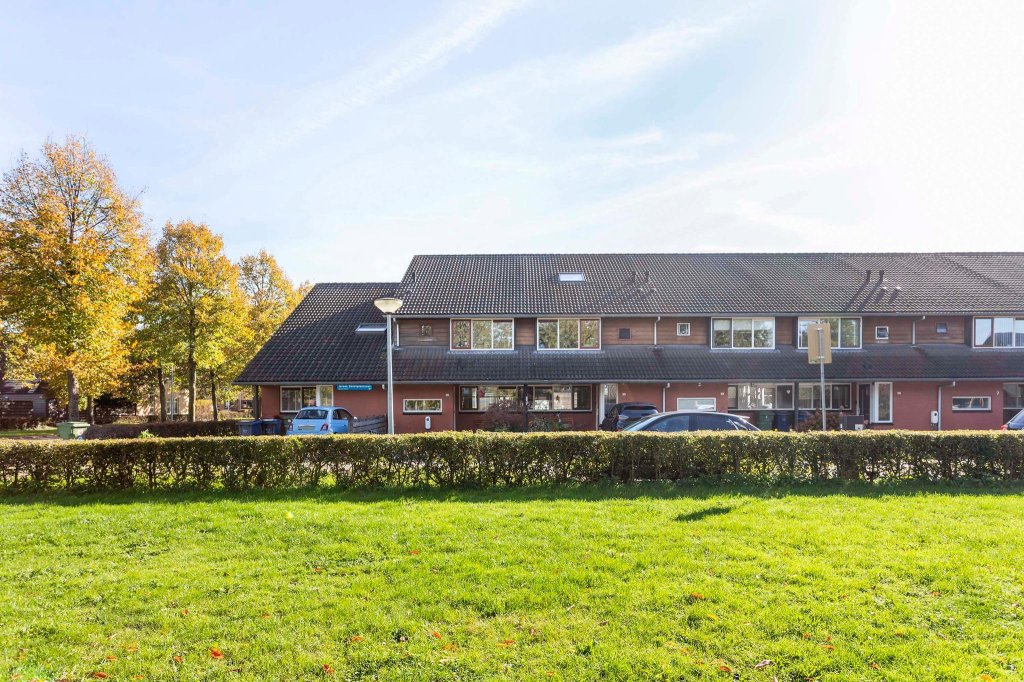 De woning heeft een eigen oprit die nu ruimte biedt aan 1 auto. De woning is gelegen aan een breed, groen plantsoen waardoor je een fijn uitzicht hebt. Het is een rustige buurt met speelmogelijkheden voor kinderen. Door de dubbele daklijnen, de overkapping bij de voordeur en het gebruik van rode bakstenen en hout zijn de woningen in de straat heel sfeervol.
