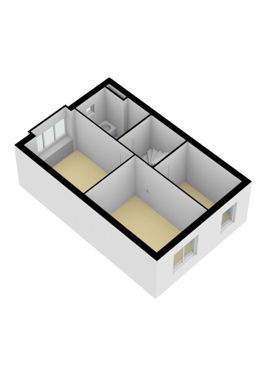 Op de eerste verdieping bevinden zich drie slaapkamers, een badkamer en een trapopgang naar de tweede verdieping.