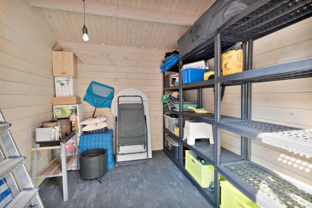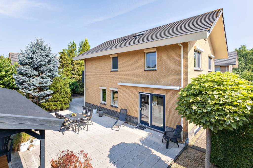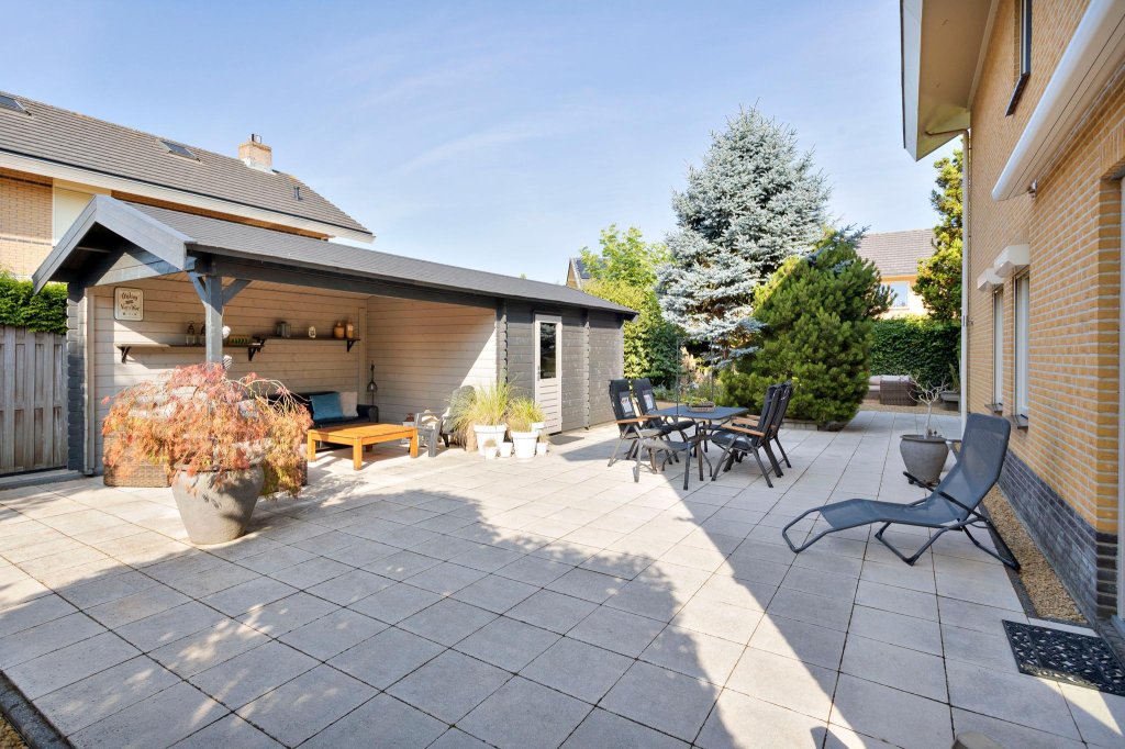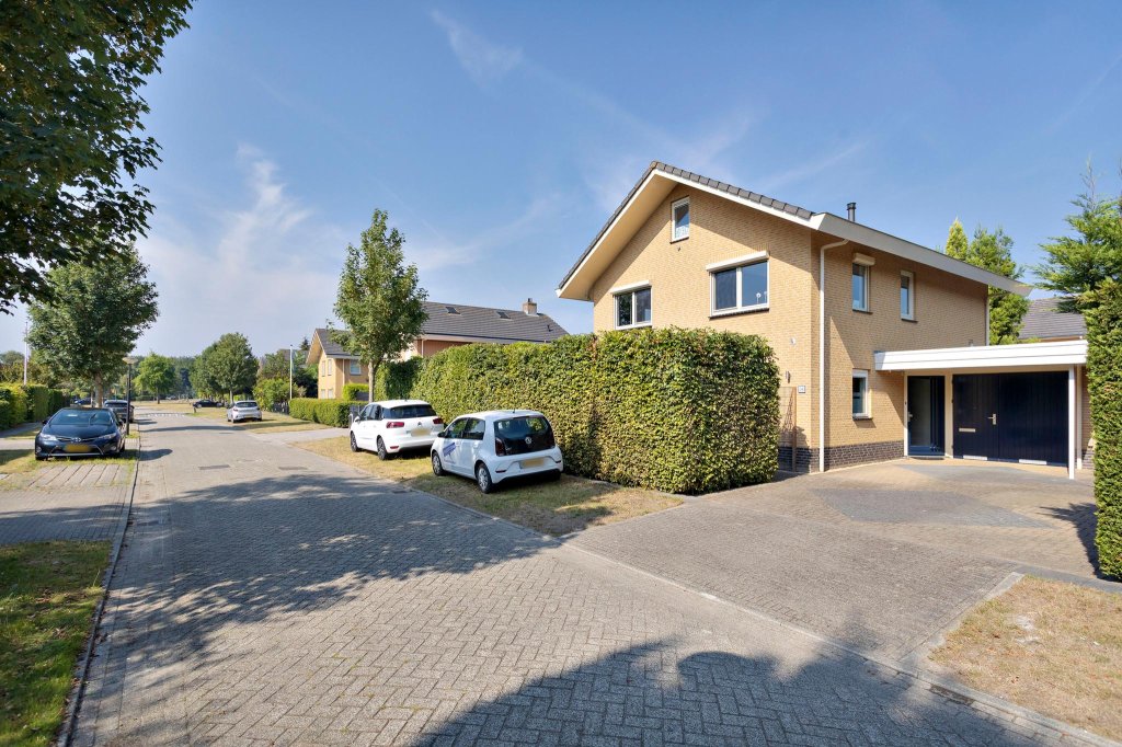 De oprit biedt voldoende plaats voor 2 auto’s. Meer parkeermogelijkheid aan de straatkant. In de tuin bevindt zich een ruime schuur. Een fantastische groene tuin met ruimte voor diverse zitjes en veel vaste groene struiken en bomen. Hierdoor is privacy gegarandeerd. Rondom zijn er voldoende zon- en schaduwplekken. Er is tevens een zonnescherm met wind- en zonautomaat aanwezig. De sfeervolle overkapping biedt ruime zitmogelijkheden en is voorzien van bergruimte en een grote houtopslag voor de sfeervolle houtkachel. De woning is gesitueerd in het groenste gedeelte van Almere Buiten, de Seizoenenbuurt, met diverse parken op enkele minuten lopen. De supermarkt is lopend te bereiken in 3 minuten en het openbaar vervoer en de basisschool in 2 minuten. Winkelcentrum Almere-Buiten en het NS-station bevinden zich op 5 minuten fietsen. Tevens zijn de Oostvaardersplassen op loopafstand.