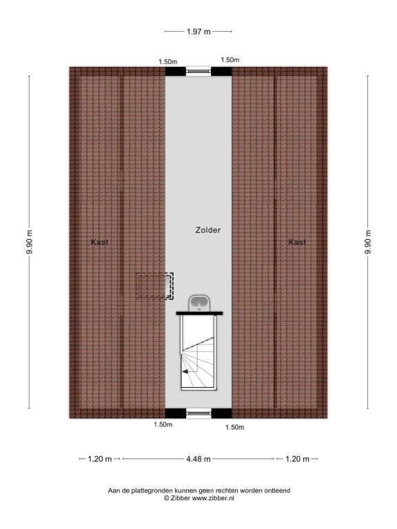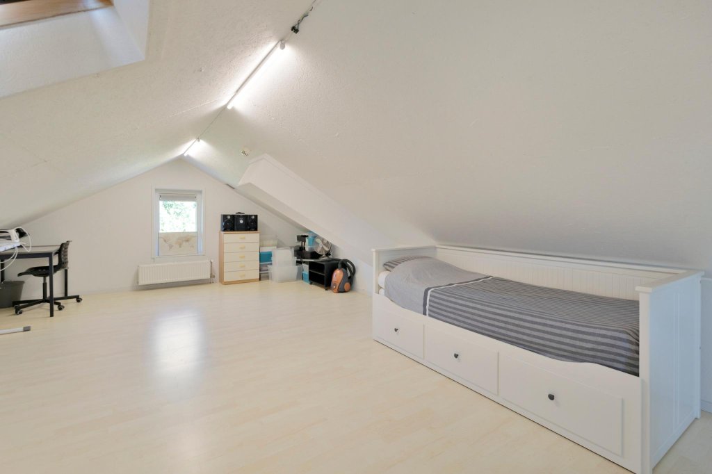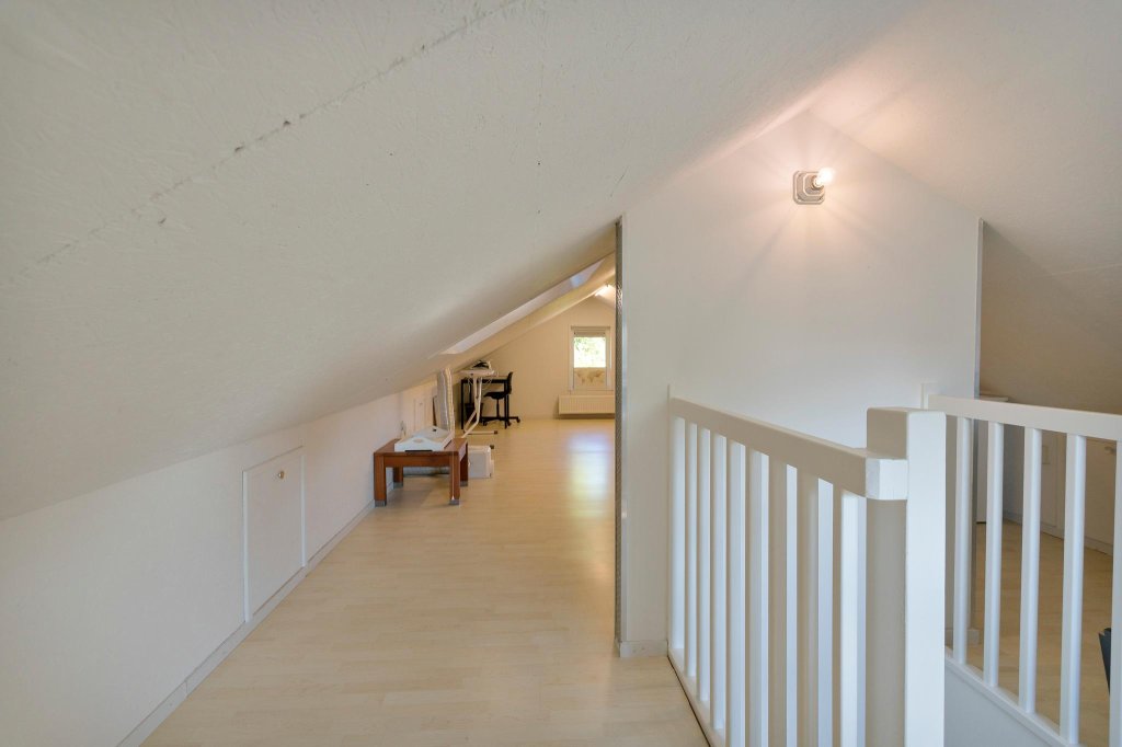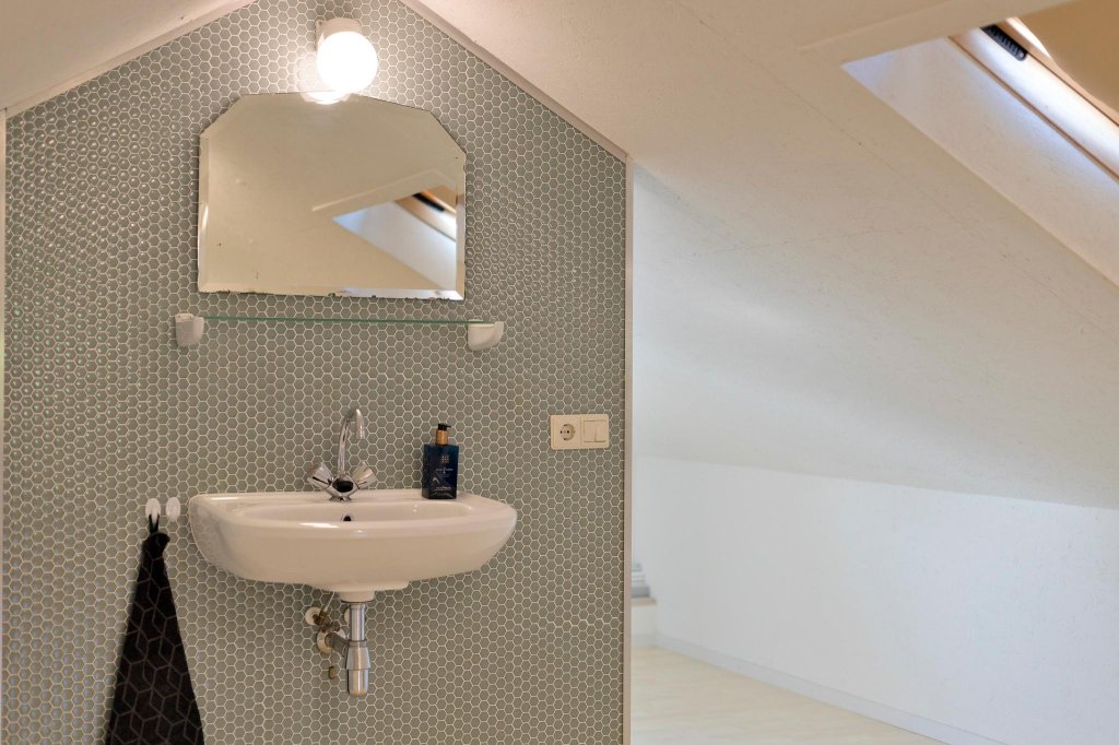 - Een ruime zolder met vaste trap, voorzien van een wastafel met thermostaatkraan.