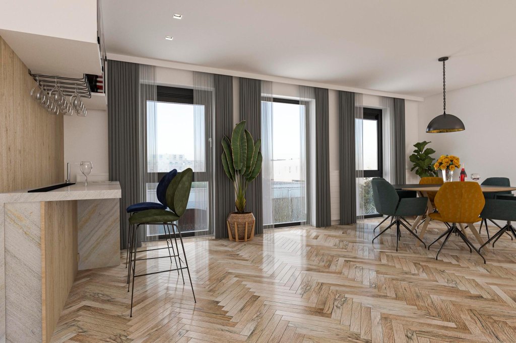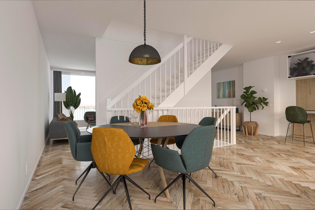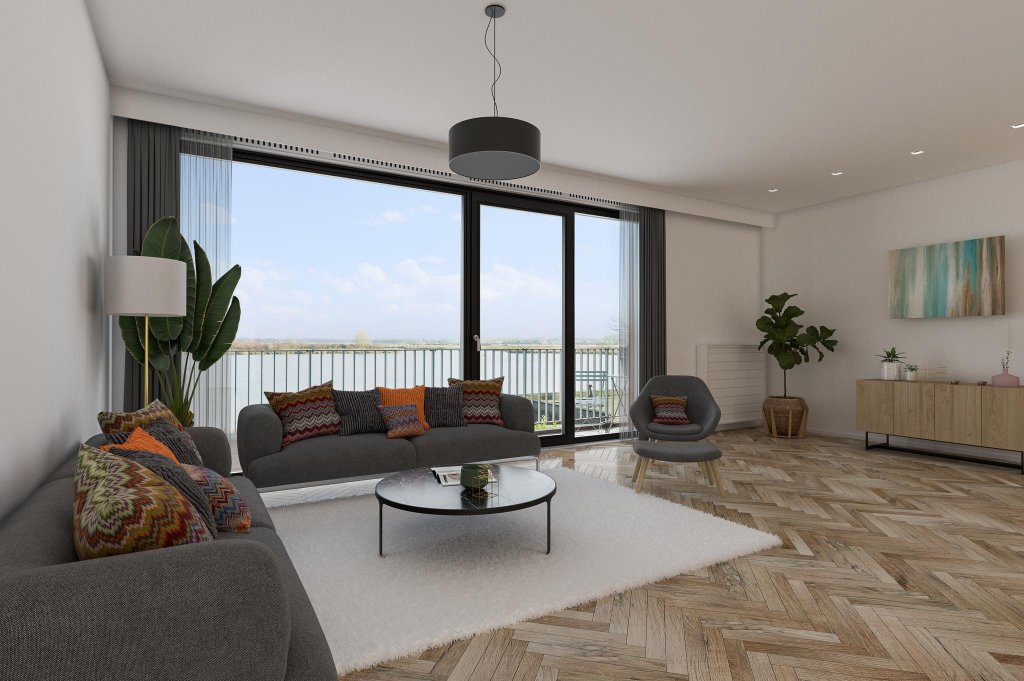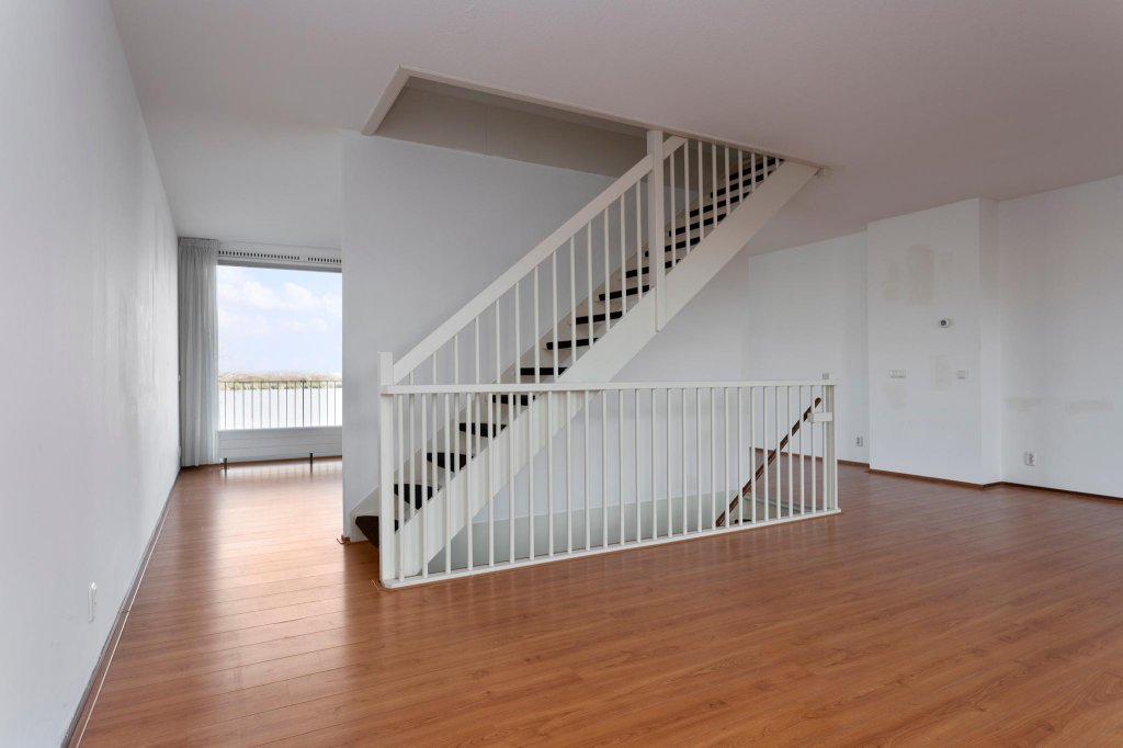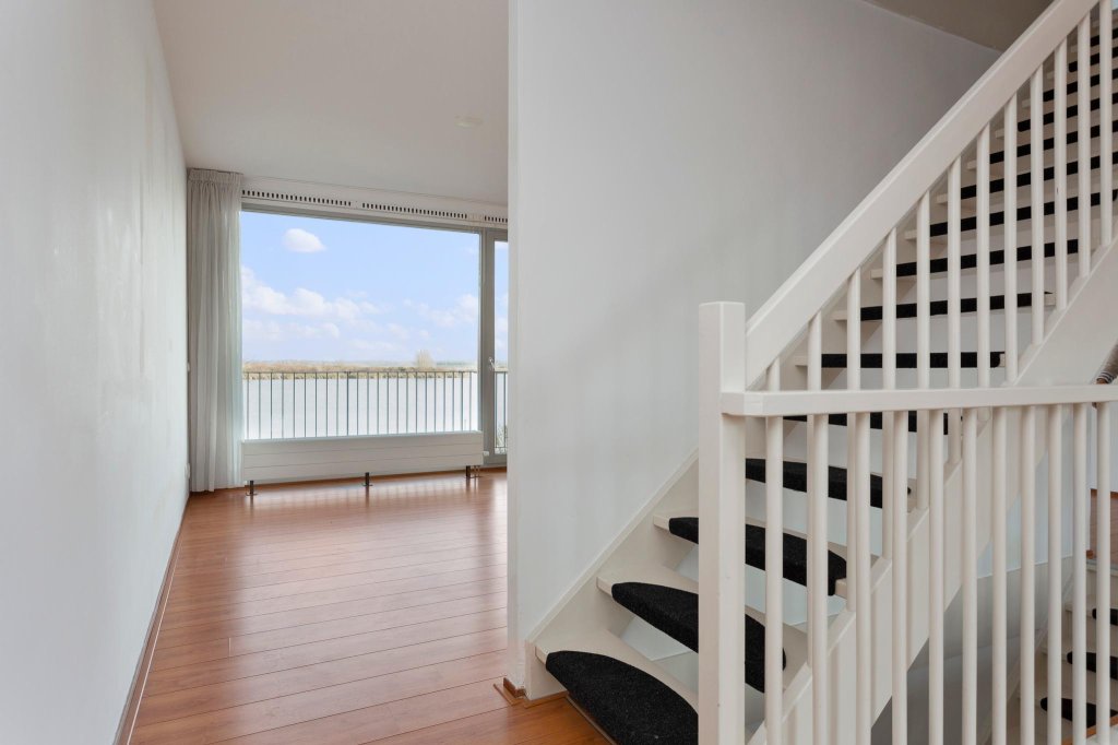 De woonkamer is zeer ruim en heeft door de trapopgang in het midden een natuurlijke splitsing, hierdoor zijn er als het ware 2 vertrekken ontstaan, de tuinkant geeft plek voor een heerlijke bar (zie hiervoor de Visual) maar het meest unieke is het uitzicht op de Noorderplassen, dit is echt uniek, maar kom dit zelf ervaren.