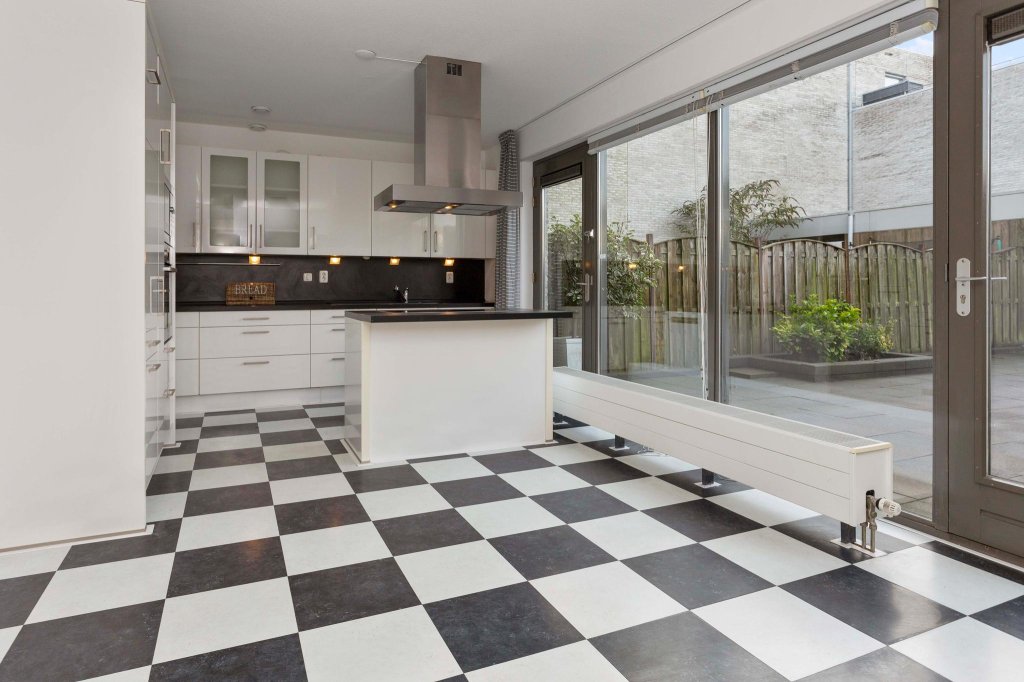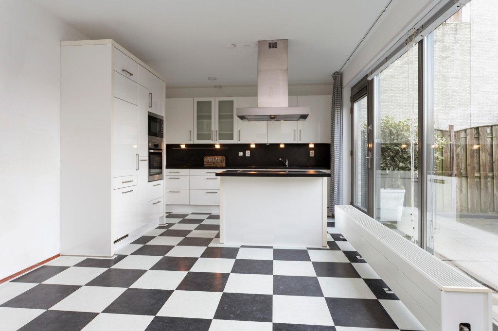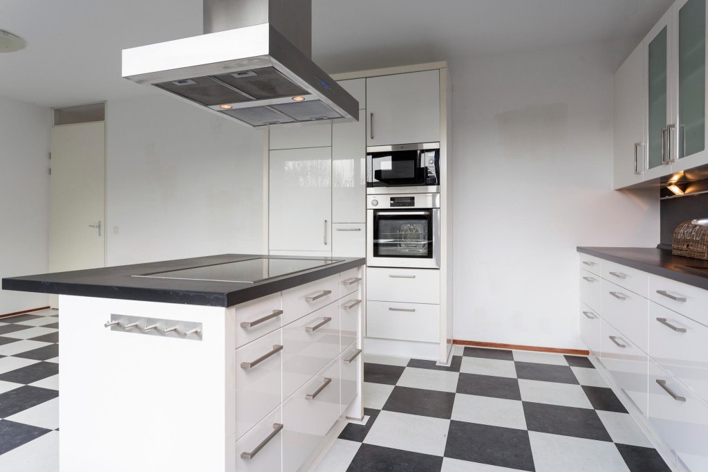 Kom binnen, links vindt u de toegang tot de garage, rechtdoor vind u de enorme woonkeuken en voor de keuken de trap naar de woonkamer. De woonkeuken geeft u ook toegang tot de ruime tuin met berging. De keuken is voorzien van alle gemakken en een kookeiland.