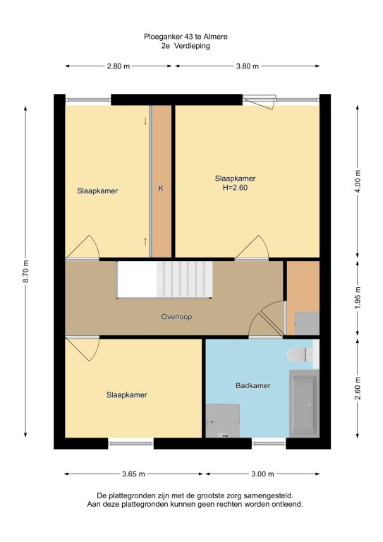 De trap gaat door naar de 2e etage, hier vindt u 3 slaapkamers en de badkamer met ligbad en aparte douchecabine en een aparte ruimte voor de wasmachine. Ook hier kan van één slaapkamer waar nu ook een geweldige van wand tot wand kledingkast bevindt, een geweldige werkplek worden gecreëerd met uitzicht op de Noorderplassen.