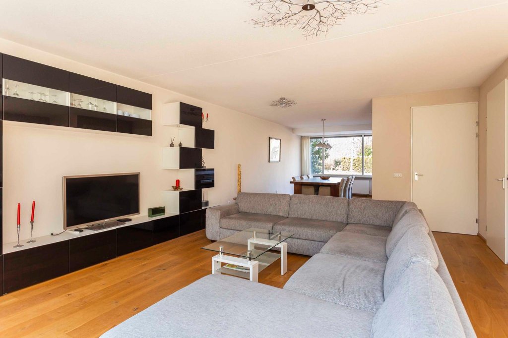 Woonkamer: Wat een ruimte, op de vloer ligt een prachtige eikenhouten parketvloer. Rechts na binnekomen vind u aan de voorkant van de woning een enorme ruimte, met plaats voor een eettafel waarin u heerlijk uitzicht heeft op het hofje, u kijkt over een riante voortuin met een groot stuk groen waardoor u enorm veel privacy ervaart,