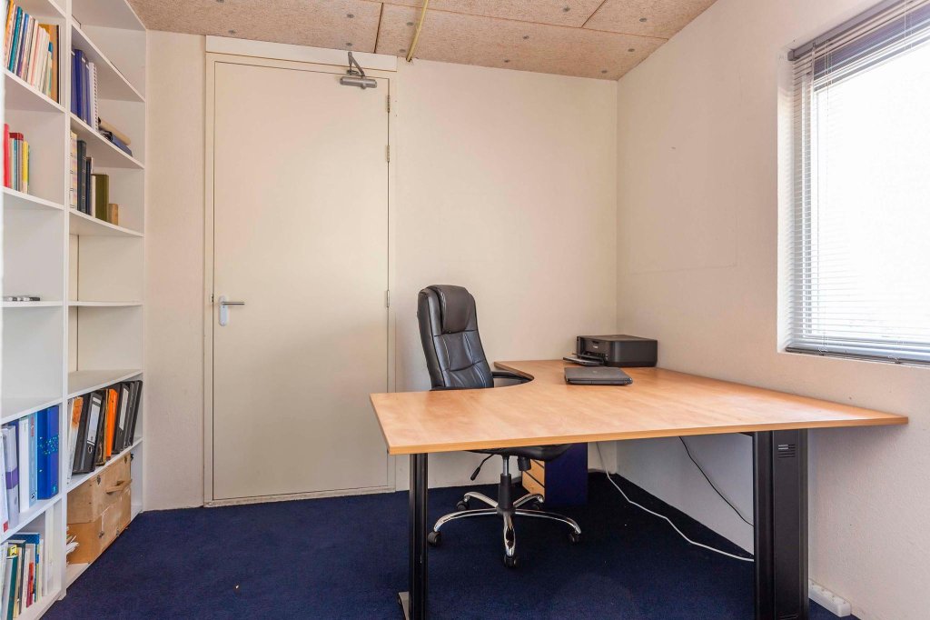 Kantoor: Vanuit de keuken loopt u een klein maar fijn kantoor in met zijraam en doorloop naar de garage. U pakt dus makkelijk even een kop koffie in de naastgelegen keuken.