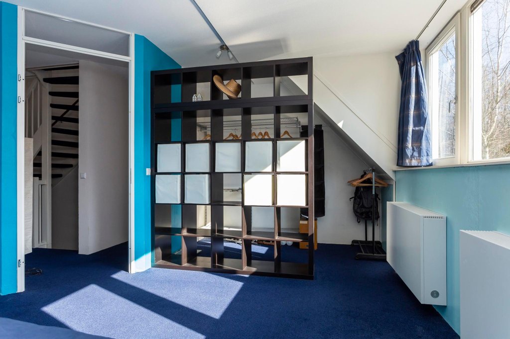 Links loopt u de grote slaapkamer in, waarin een walk-in closet is gecreëerd, deze kunt u makkelijk professioneel uitbreiden. Deze kamer heeft een sfeervolle en brede praktische dakkapel met heerlijk uitzicht op het bos. Hoe rustig zult u hier slapen.