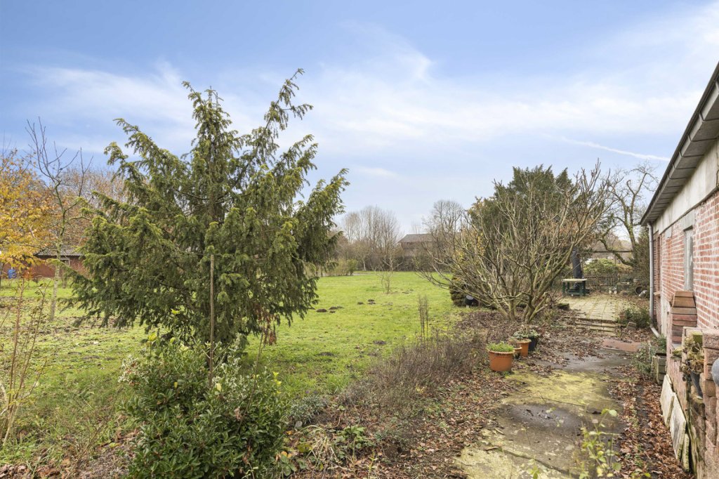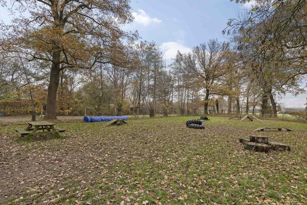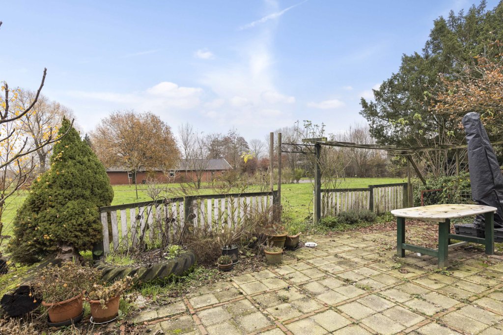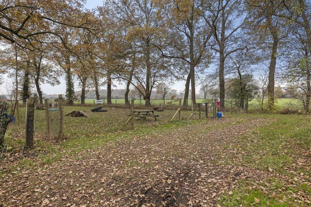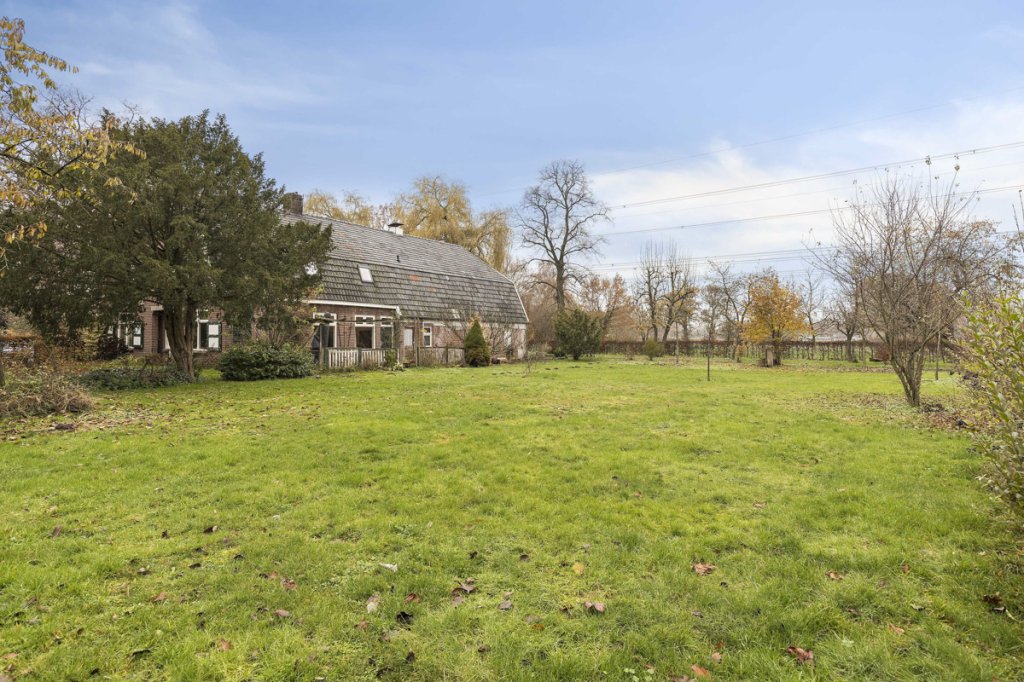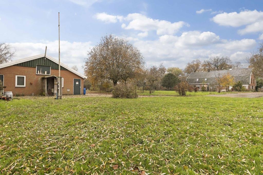 Aan de overzijde van de rustieke klinkerweg bevindt zich een deel van het erf (2995 m2) met daarop een schuur van 97m2. Door dit terrein heeft u altijd zelf de regie over uw eigen uitzicht aan de voorzijde.