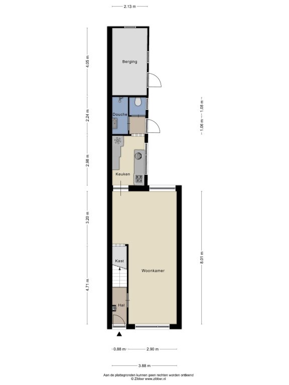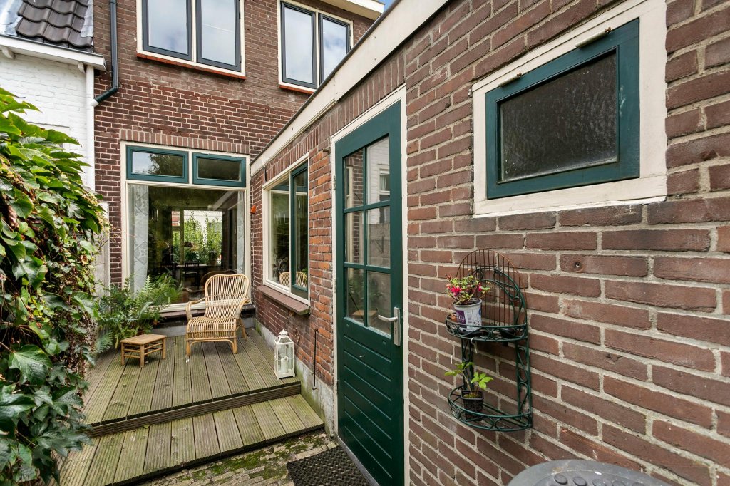 Begane grond: entree/hal met meterkast, trapopgang naar eerste verdieping en toegang tot ruime en lichte woon- en eetkamer. De voorzijde van de woonkamer is in gebruik als eetgedeelte en de achterzijde als zitkamer. De woonkamer met fraaie houten vloer en trapkast biedt middels een groot raam zicht op de achtertuin. De dichte keuken is voorzien van een 4-pits gasfornuis, afzuigkap, vaatwasser, koel-/vriescombinatie en spoelbak. Achter de keuken bevindt zich een separate toiletruimte en de douche en tevens toegang tot de achtertuin. Aansluitend is een ruime stenen schuur waar veel opbergruimte is. Bovenop de aanbouw ligt voor de helft een sedumdak dat verkoeling brengt en goede isolatie is.