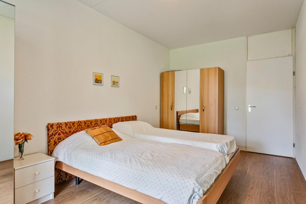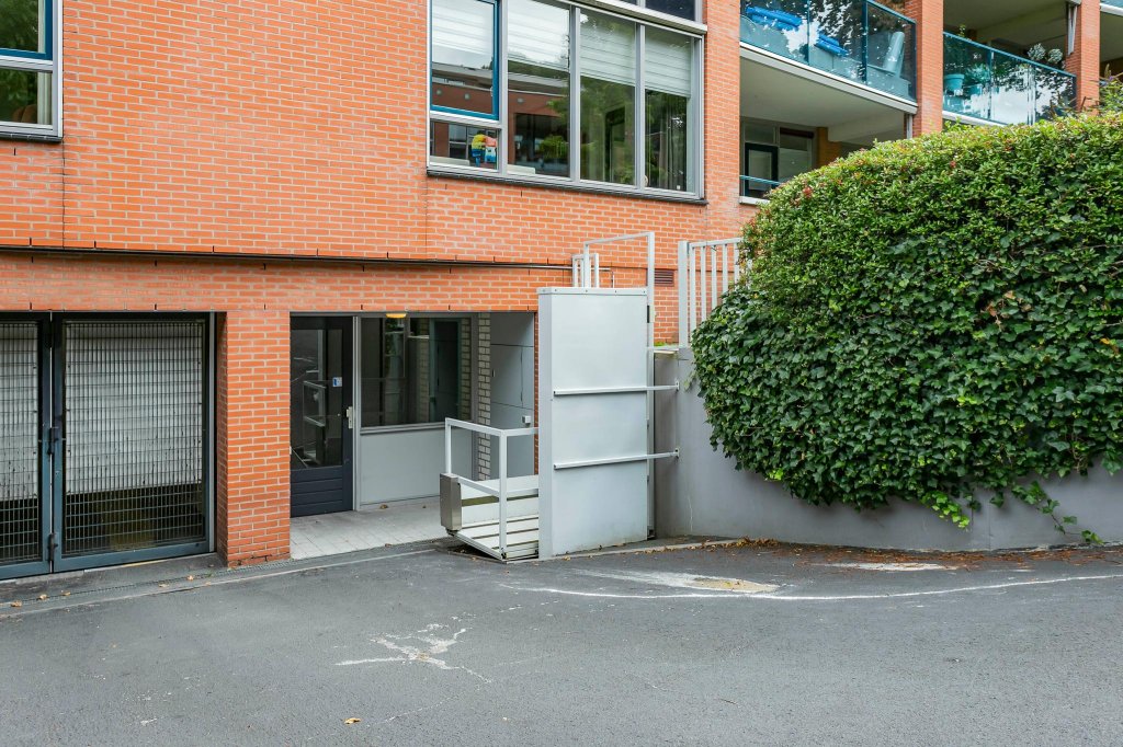 Brede open hal met videofoon en toegang tot 2 ruime slaapkamers en de badkamer. De hal loopt over in de zonnige en royale woonkamer die is voorzien van brede raampartijen. De hal en het woongedeelte zijn voorzien van een lichte plavuizen vloer. De woonkamer biedt toegang tot het grote overdekte terras van ruim 12 m2 op het zuidwesten met zicht op de fraai aangelegde parktuin. Beide slaapkamers (13 m2 en 16 m2) zijn voorzien van een laminaat vloer. De “master bedroom” heeft directe toegang tot het terras. De badkamer is voorzien van een ligbad en wastafel. Apart toilet en nog een aparte doucheruimte. Ruime berging met wasmachine aansluiting. Een eigen overdekte parkeerplaats en separate berging (6m2) zijn aanwezig in het souterrain, bereikbaar per lift en trap.