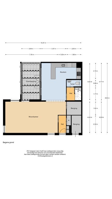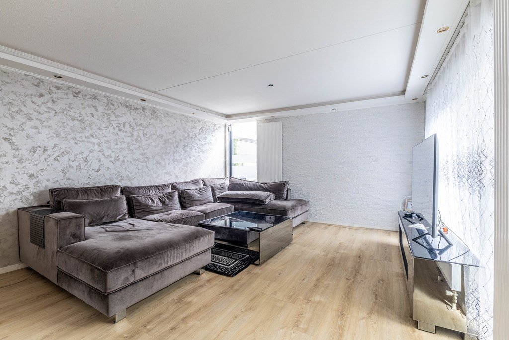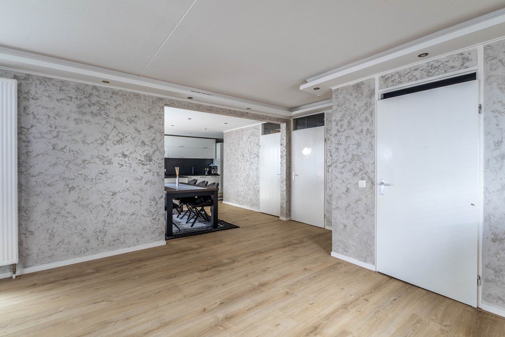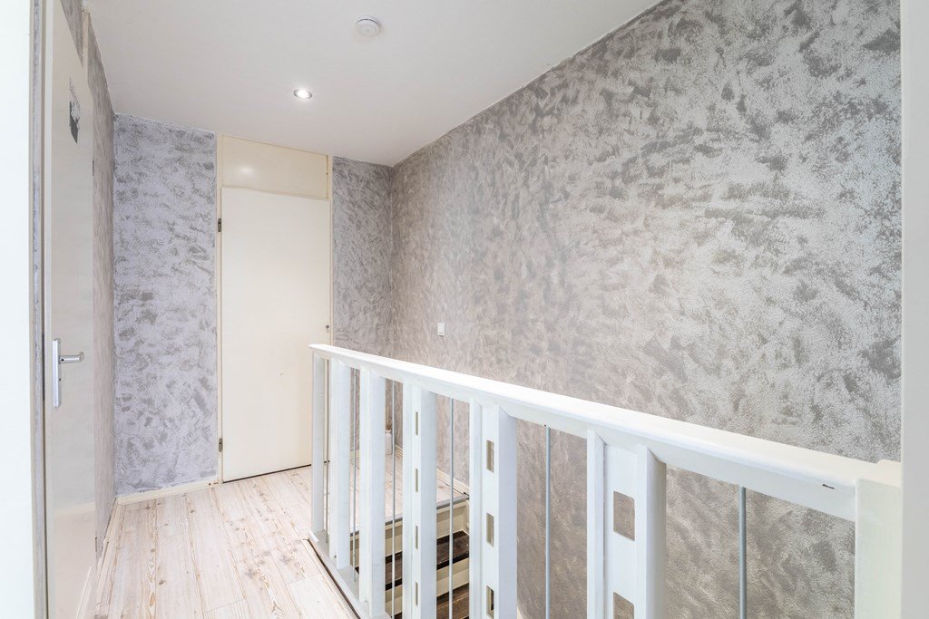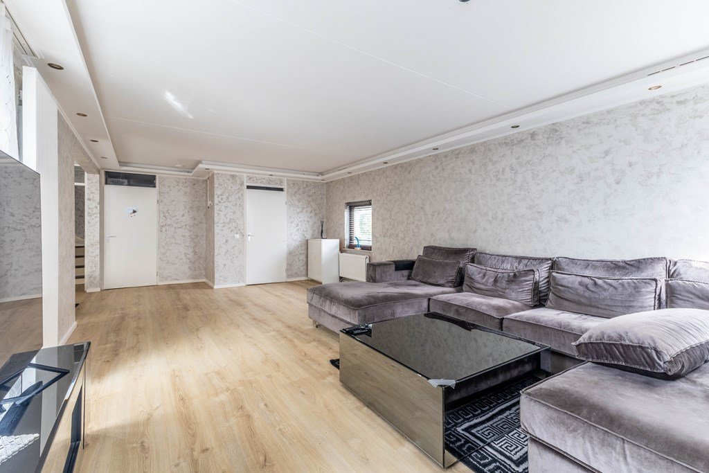 Begane grond: U komt binnen in de hal met toegang tot de meterkast, berging en de woonkamer. De royale woonkamer heeft veel natuurlijke lichtinval vanuit verschillende hoeken.