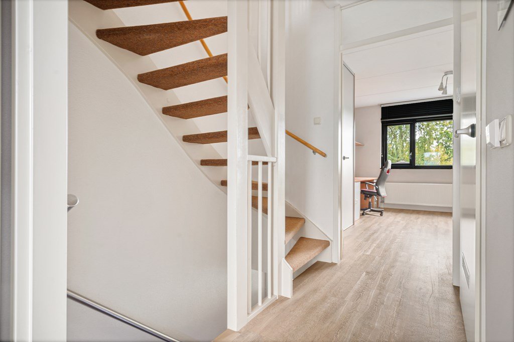 Dankzij de kubusvormige bouw biedt ook de tweede verdieping volop ruimte. Hier vind je nog eens twee riante slaapkamers én een aparte berg-/wasruimte met opstelling voor wasmachine en cv-ketel.