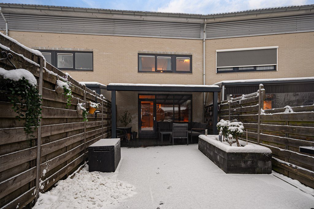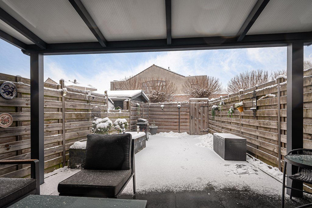 De achtertuin is een absoluut pluspunt. Met een diepe tuin en een veranda die fungeert als verlengstuk van de woning, is dit een plek waar je tot in de late uurtjes geniet. Barbecue aan, vrienden over de vloer, lang natafelen in de avondzon – het kan hier allemaal.
