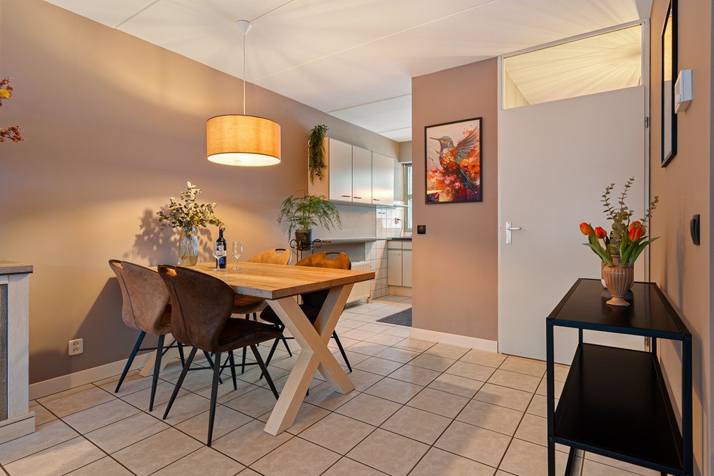 Bij binnenkomst valt meteen de prettige ruimte en lichtinval op. De woonkamer voelt ruim aan en staat in open verbinding met de keuken, waardoor het een fijne plek is om samen te zijn – of dat nu aan de eettafel is of gezellig op de bank. Alles is netjes verzorgd; je merkt dat deze woning met aandacht is bewoond en onderhouden.