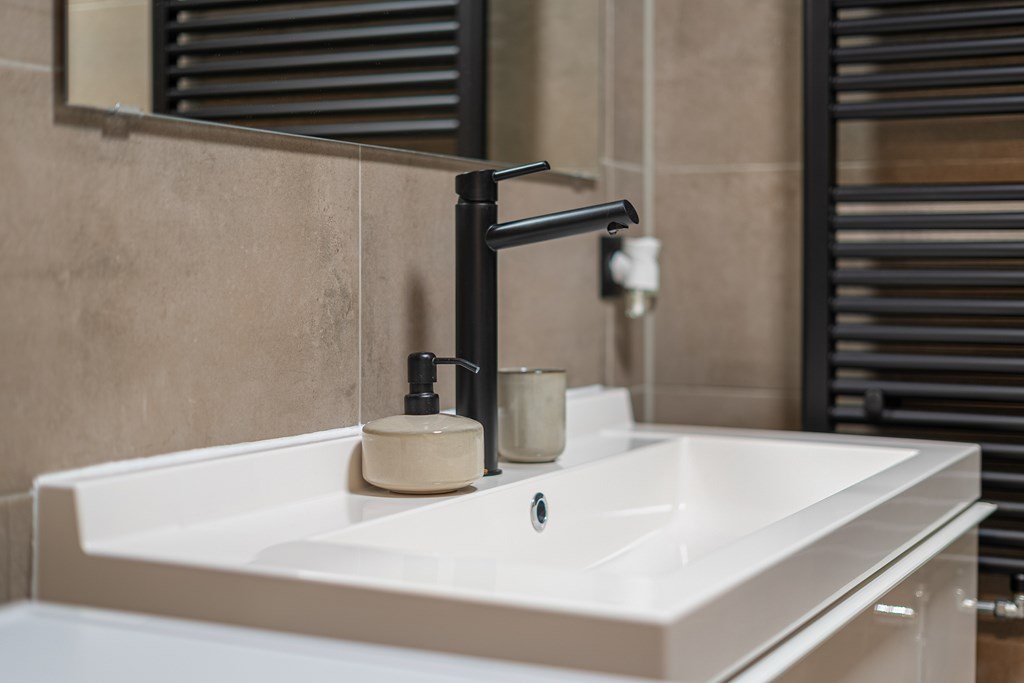 Eerste verdieping: ruime overloop, drie goed bemeten slaapkamers en een luxe badkamer met inloopdouche, wastafelmeubel, designradiator en tweede toilet. Afzuiging via mechanische ventilatie.