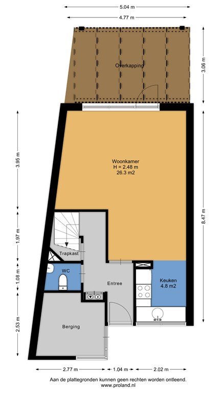 Begane grond: hal met meterkast en trapkast, toilet met fonteintje, ruime tuingerichte woonkamer met toegang tot de achtertuin en een halfopen hoekkeuken. De gehele begane grond is voorzien van een plavuizenvloer.