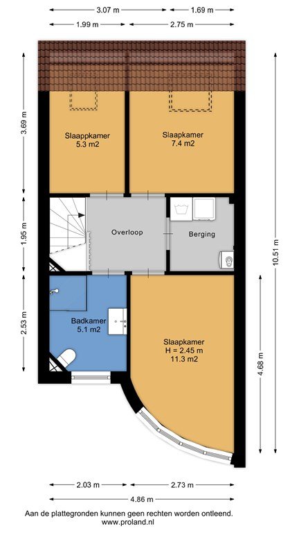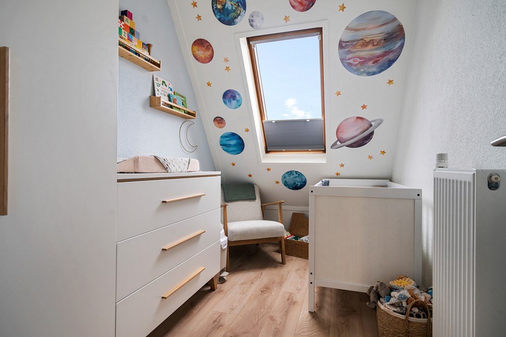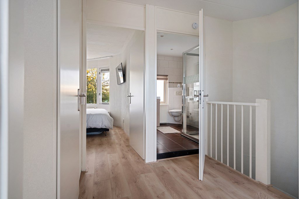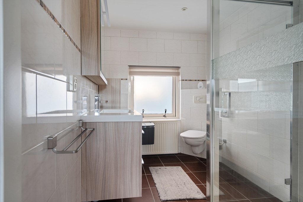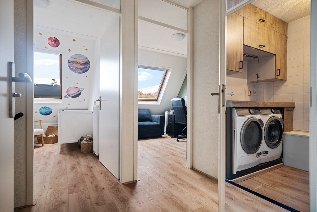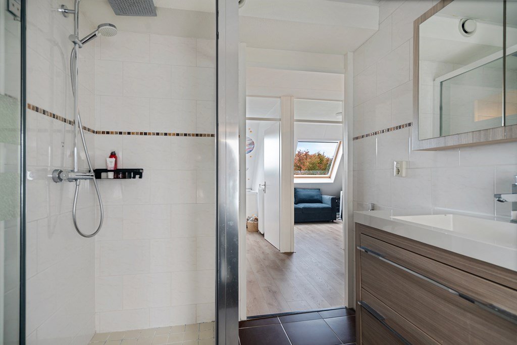 Op de eerste verdieping bevinden zich drie slaapkamers: twee ruime kamers en één kleinere. De badkamer is uitgerust met een ruime douche, wastafel en zwevend toilet. Op deze verdieping is tevens een opbergkast aanwezig met aansluiting voor de wasmachine en de cv-ketel (bouwjaar 2023).