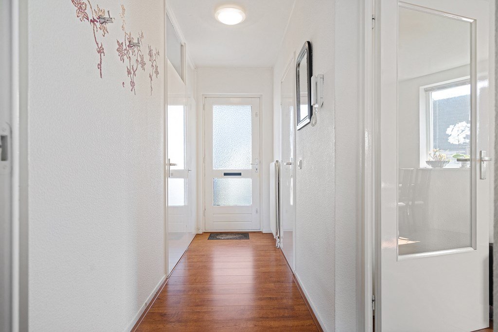 Bij binnenkomst tref je een nette hal met een vernieuwde meterkast, vanuit hier heeft u toegang tot de bergruimte, de badkamer, de slaapkamer en de woonkamer. De praktische berging met opstelling van de cv-ketel (Remeha Avanta CW4, 2022) biedt extra opslagruimte.