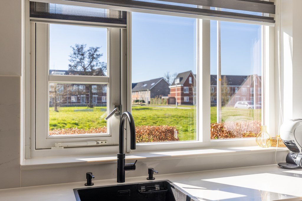 Aan de voorzijde ligt de moderne U-keuken uit 2024 – strak, eigentijds en van alle gemakken voorzien. Hier kook je niet alleen, hier geniet je. Met vrij uitzicht over de speelweide heb je altijd een levendig en groen decor.