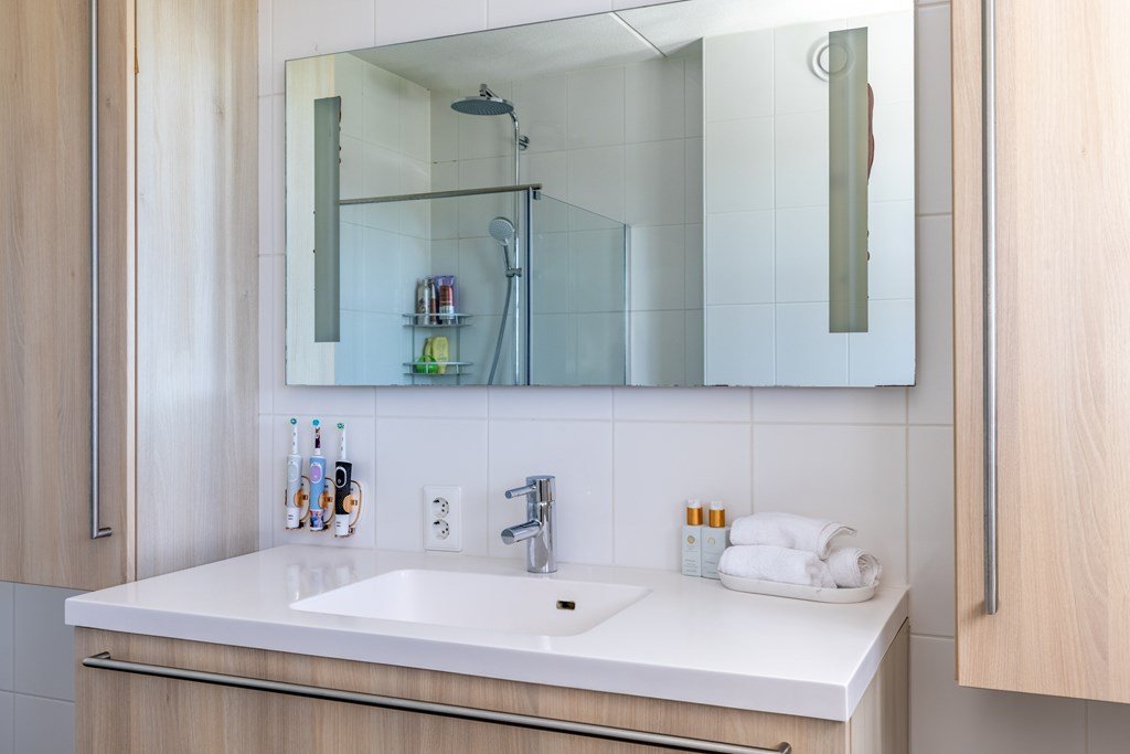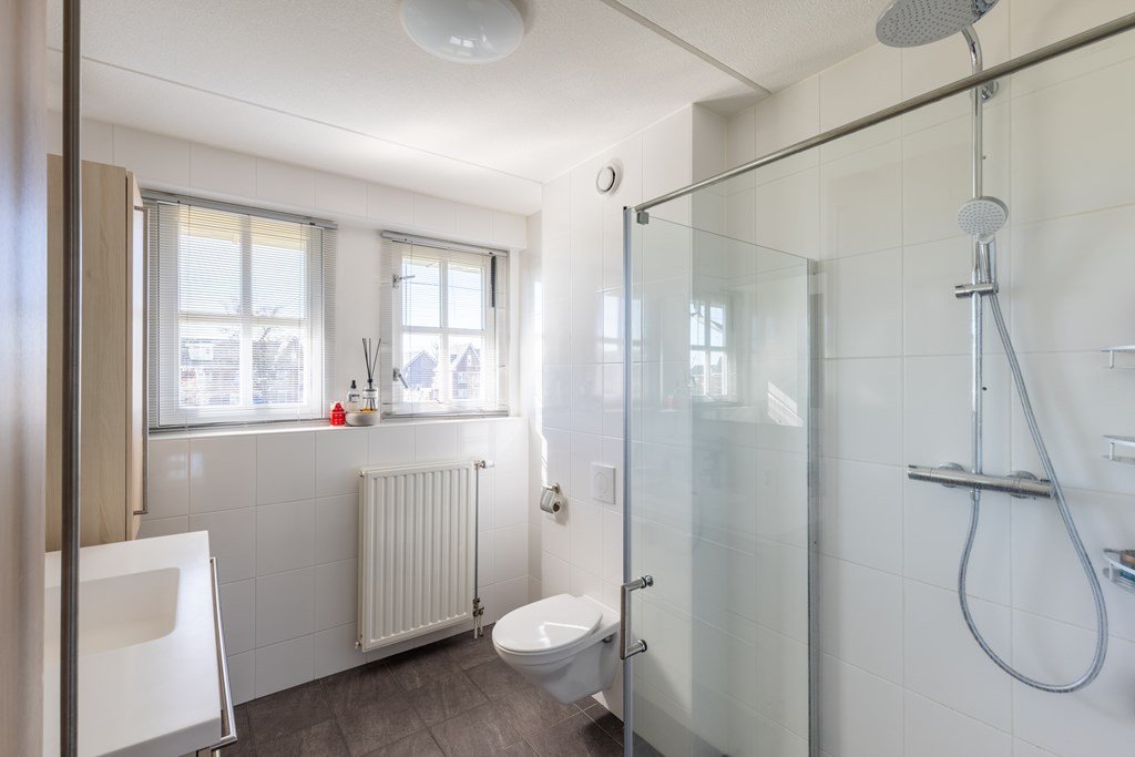 De eerste verdieping biedt drie fijne slaapkamers, allemaal prettig van formaat en mooi afgewerkt. Ruim genoeg voor een gezin, een thuiswerkplek of gewoon extra comfort. De badkamer is modern en compleet, voorzien van een inloopdouche, wastafelmeubel en een tweede toilet – praktisch en stijlvol gecombineerd.