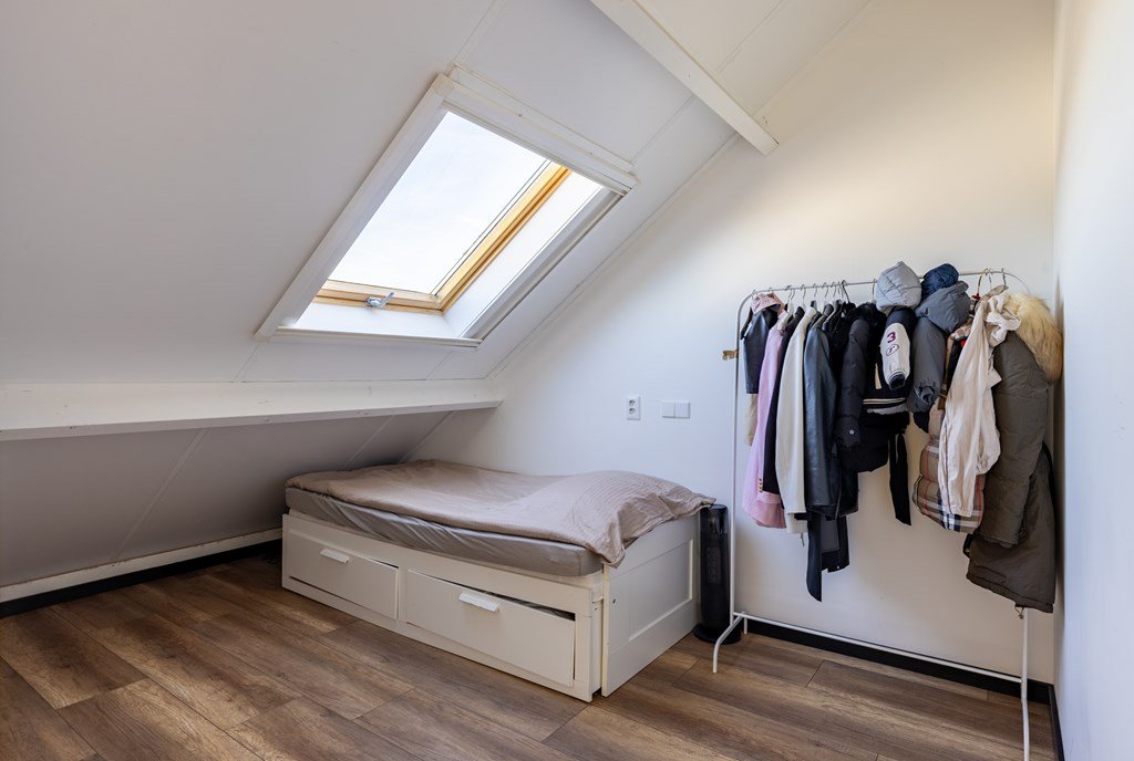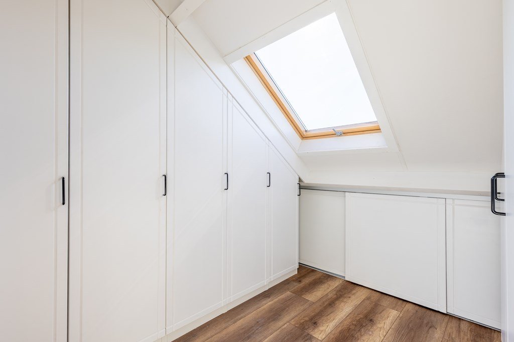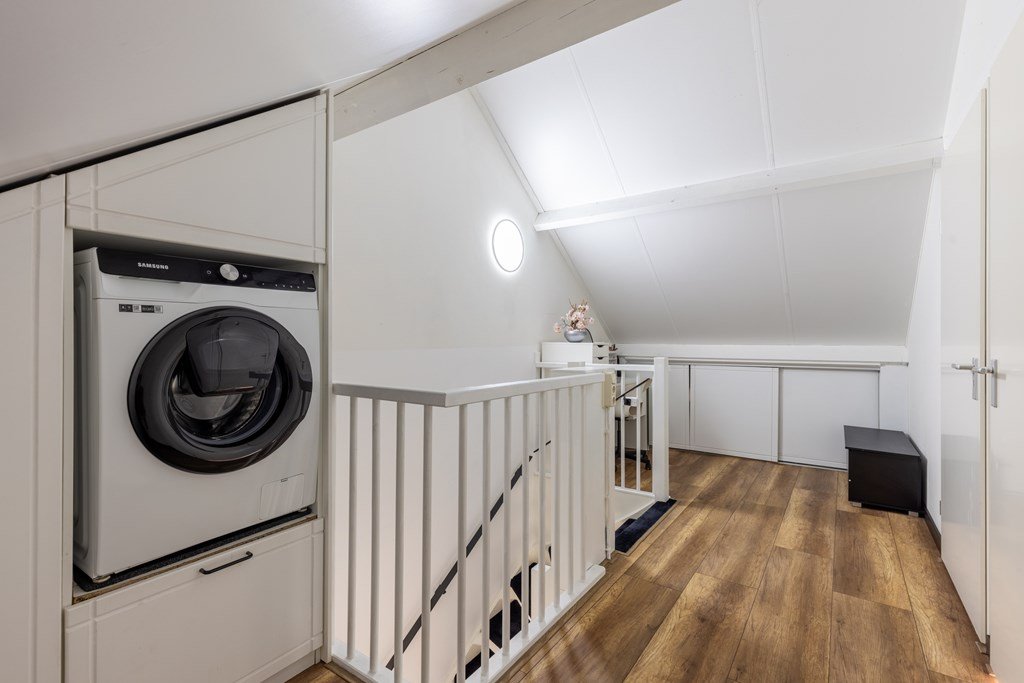 Ook de zolderverdieping verrast. Hier vind je een ruime overloop met wasmachine-opstelling, een extra slaapkamer en een aparte studeer/bergkamer. Een veelzijdige verdieping die je volledig naar eigen wens kunt gebruiken.