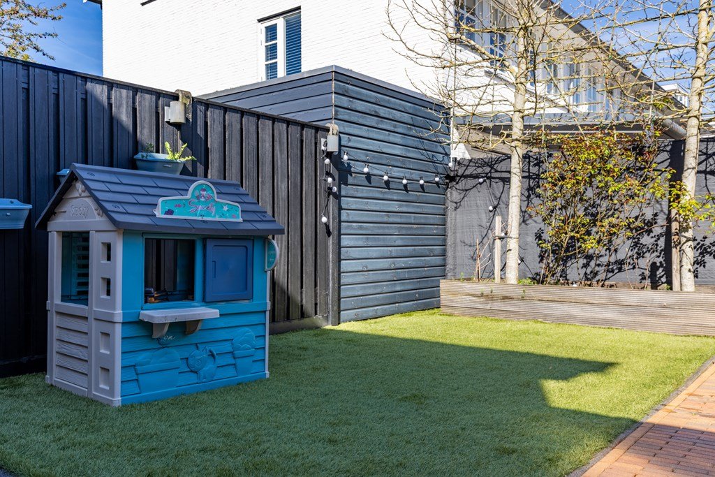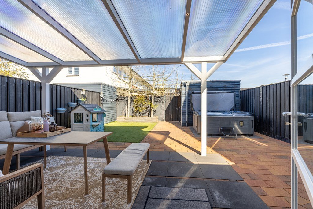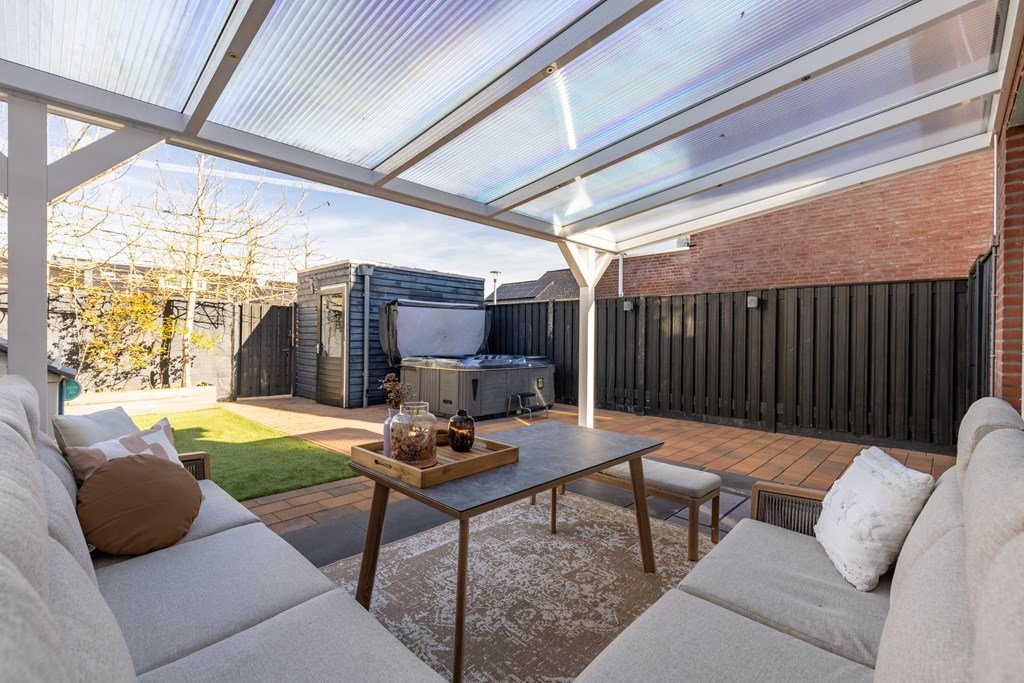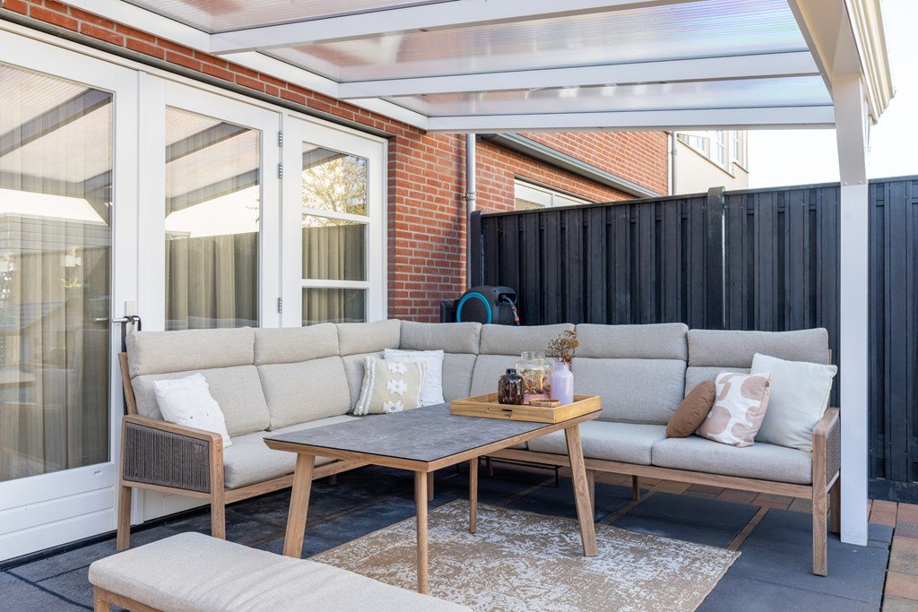 Buiten wordt het plaatje compleet. De tuin met veranda is een heerlijke plek waar binnen en buiten samenkomen. Dankzij de hoekligging geniet je hier van extra privacy en ruimte – iets wat deze woning nét dat beetje extra geeft.