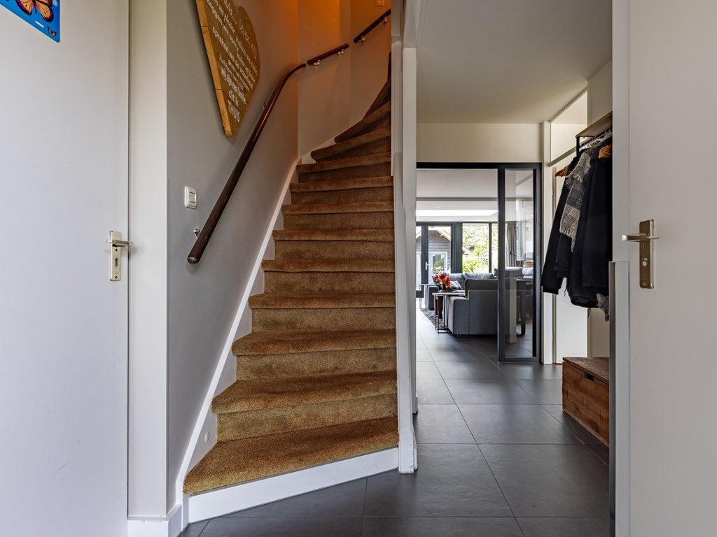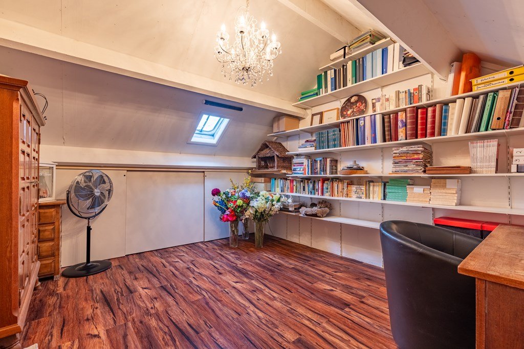 Vaste trap naar de tweede verdieping met ruime overloop, bergruimte en een ruime zesde slaapkamer.