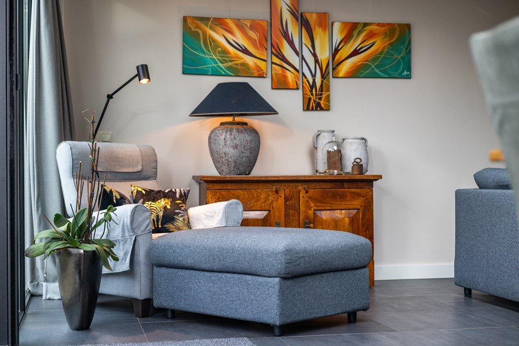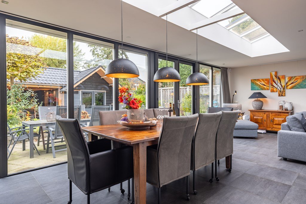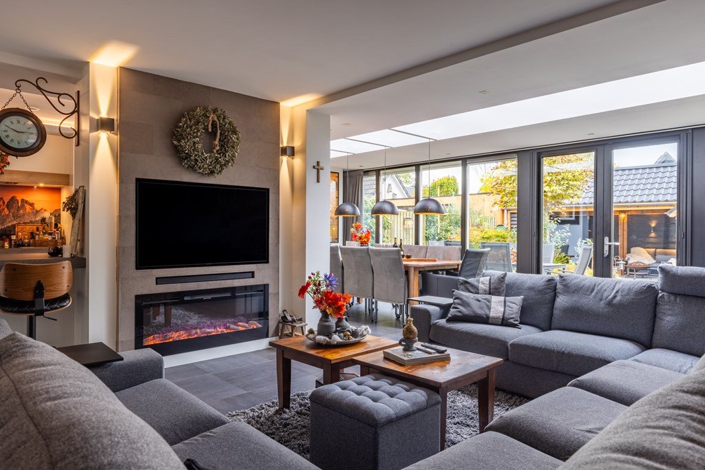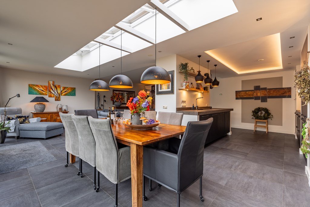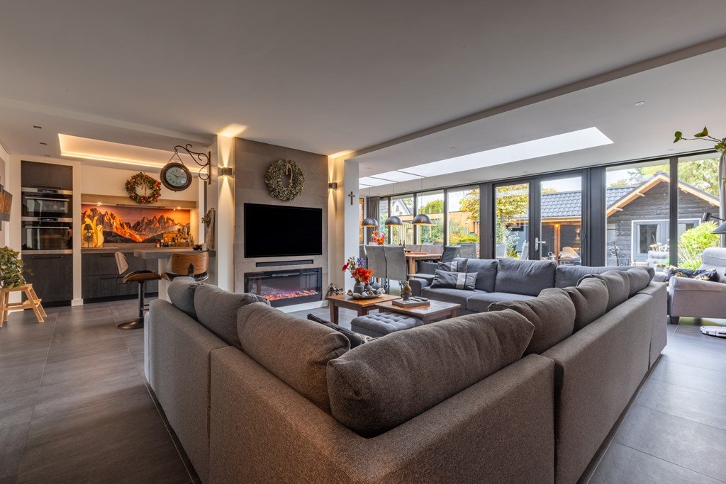 Uitgebouwde woonkamer met lichtstraat en vloerverwarming