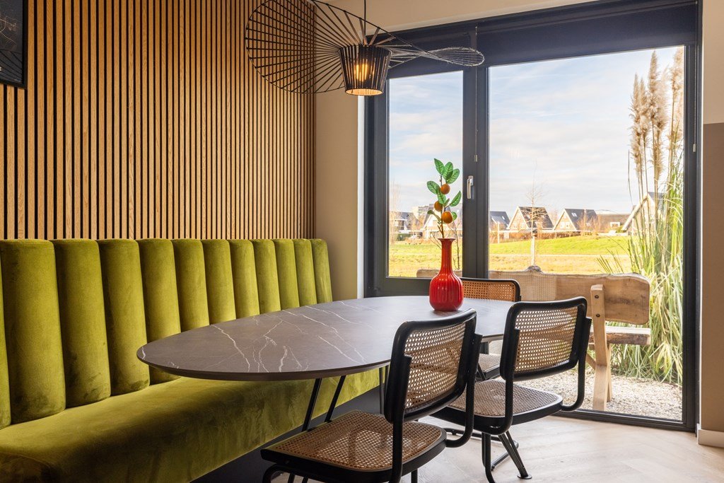 Aansluitend bevindt zich een riante zit-/eethoek met een prachtig vrij uitzicht op het groen en het park.