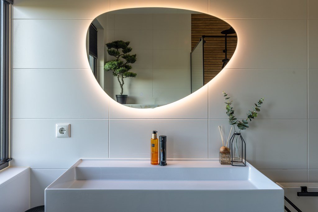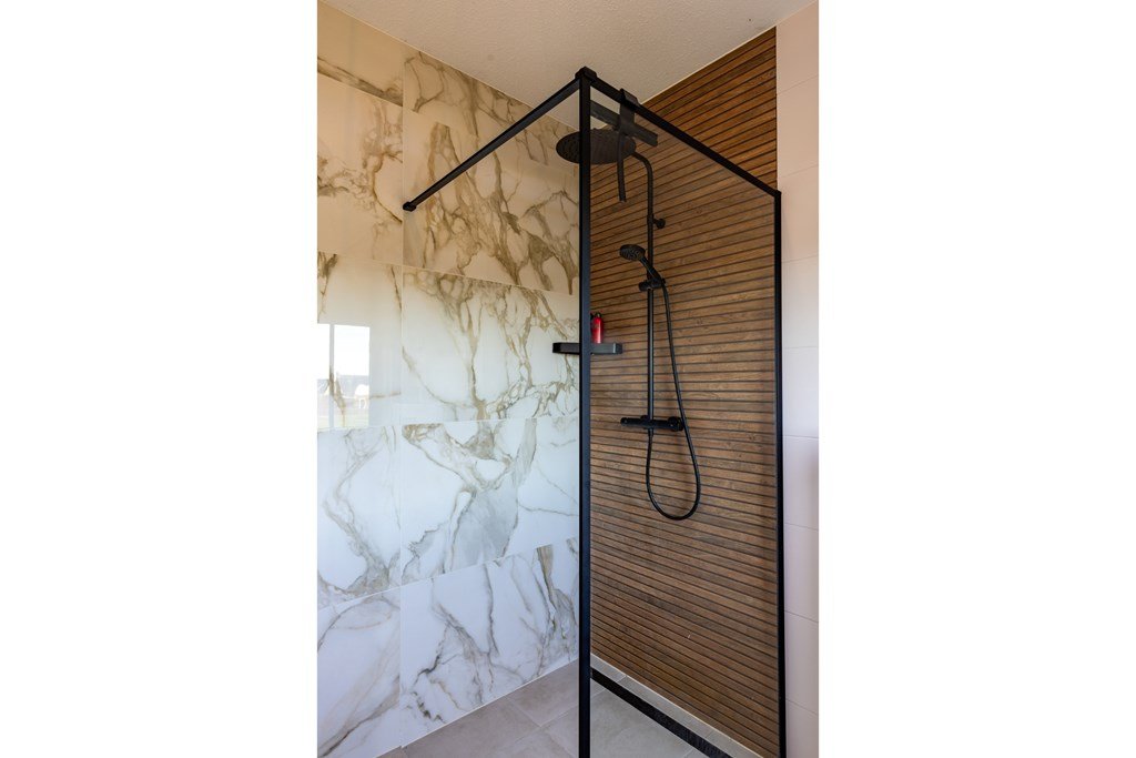 Binnenkomen is hier meteen een beleving: strak, modern en stijlvol. De entree straalt design uit en zet direct de toon voor de rest van de woning. Vanuit de hal bereikt u het moderne, zelfdragende toilet met fontein en de woonkamer via een zwarte designdeur.