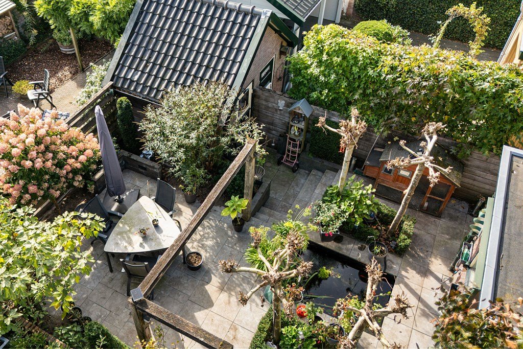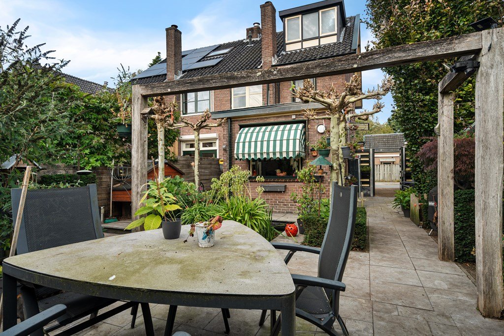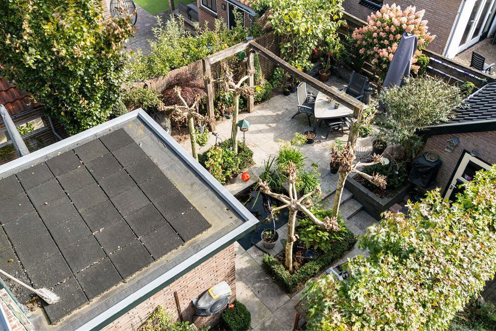 De zonnige achtertuin is de ideale plek voor lange zomeravonden, gezellige BBQ’s en verjaardagen met familie of vrienden. Er is plek voor een loungeset, speeltoestel en een grote eettafel. Achter in de tuin staat een stenen berging voor fietsen en tuingereedschap.