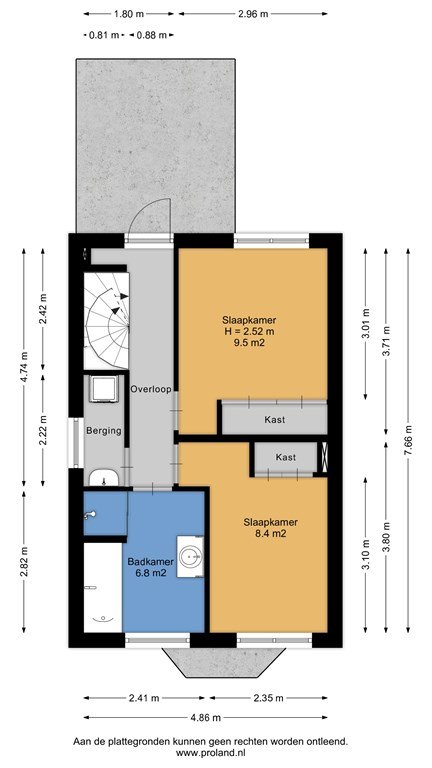 -Eerste verdieping: twee ruime slaapkamers en een badkamer met ligbad, douche en tweede toilet.