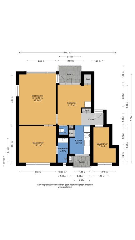 Via het gezamenlijke trappenhuis is de woning bereikbaar. In de entreehal bevinden zich de toegangen tot de keuken, de eetkamer, het toilet en de kleinere slaapkamer. De keuken is modern uitgevoerd en voorzien van een combi-oven/magnetron, vaatwasser en elektrische kookplaat, deze bied toegang tot het kleine balkon. Vanuit de keuken is er doorloop naar de eetkamer, een gezellige ruimte die tevens toegang biedt tot het ruime balkon aan de voorzijde van het complex.