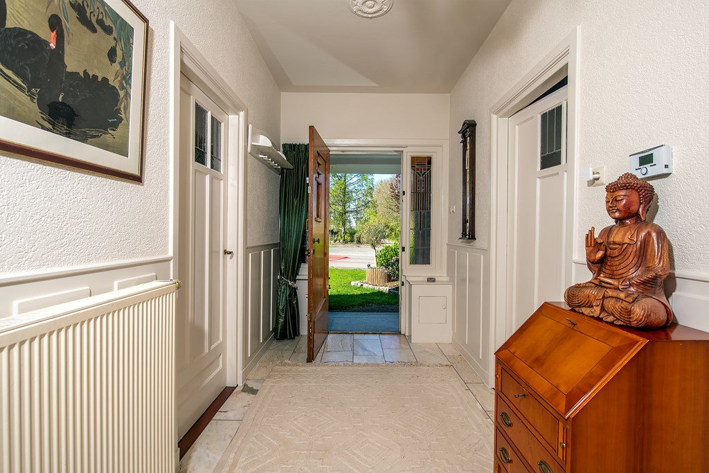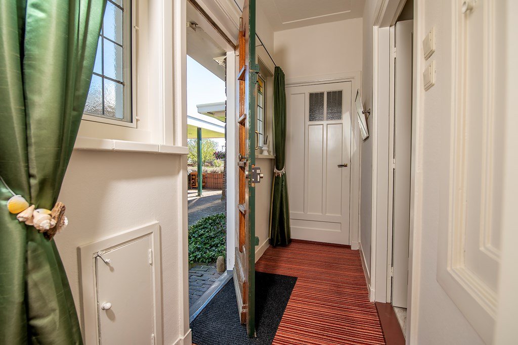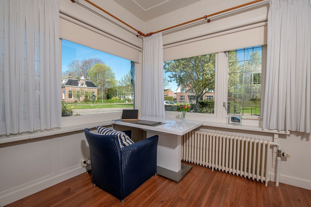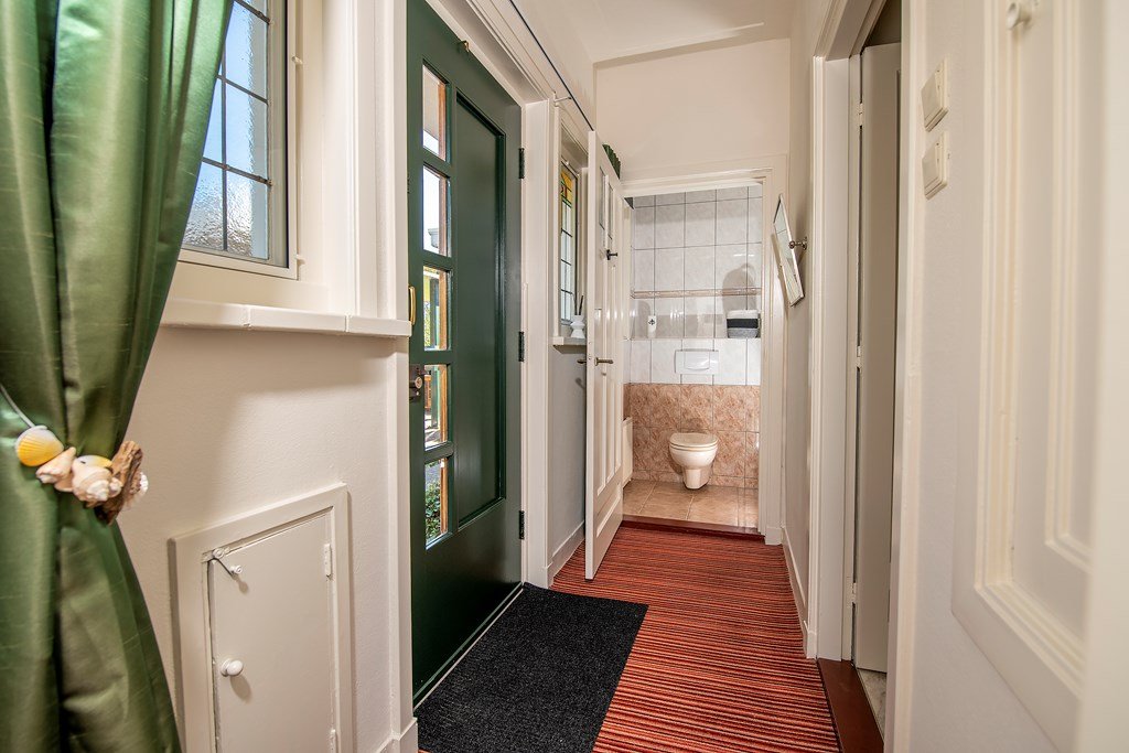 De entree aan de zijkant van de woning geeft toegang tot een kleine voorhal met toilet (de vroegere patiënten-ontvangstruimte) en een deur (met 'medicijnluikje’) rechts naar de werkkamer met inbouwkast. Deze werkkamer is licht en ruim en bevindt zich aan de voorzijde van de woning. Door deze voormalige 'patiënten' ingang is het herenhuis zeer geschikt voor een bedrijf en/of praktijkruimte aan huis.
