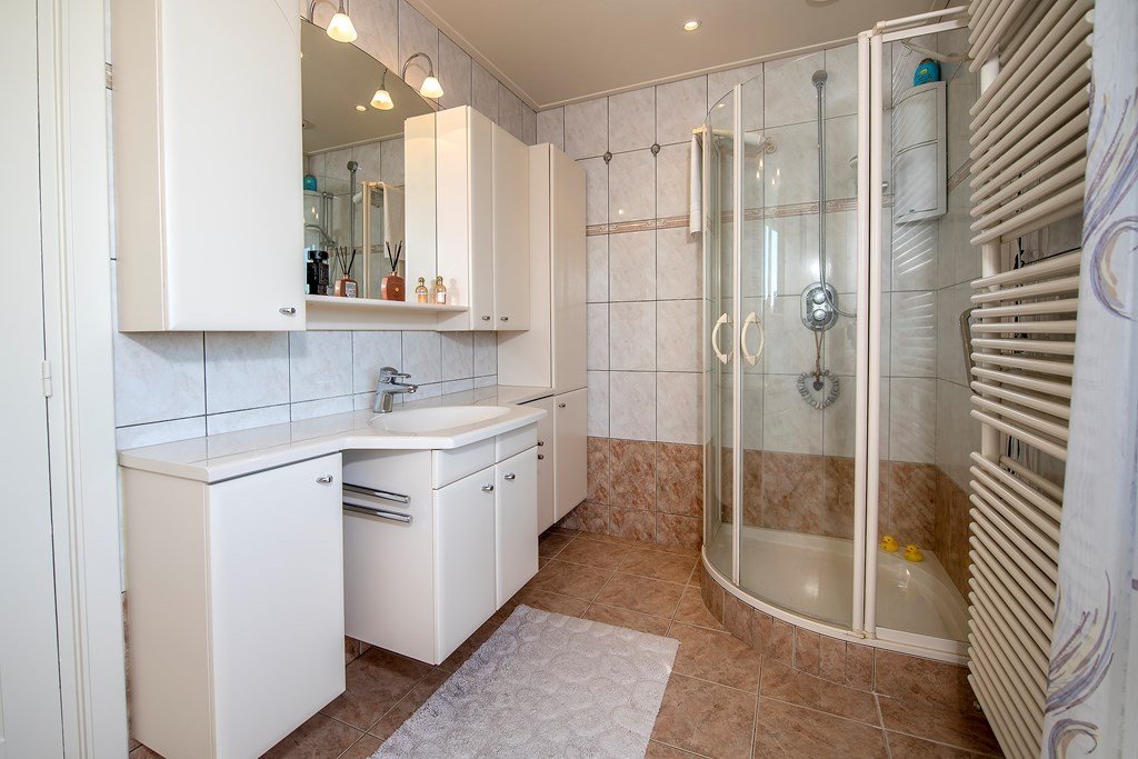 De ruime en geïsoleerde garage met zowel aan de voorkant een elektrische garagedeur als aan de achterkant een tuindeur is ideaal voor het stallen van auto, fietsen, een boot of het opbergen van tuingereedschap. De garage is tevens voorzien van aansluitingen voor wasmachine en droger.