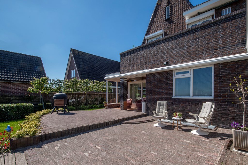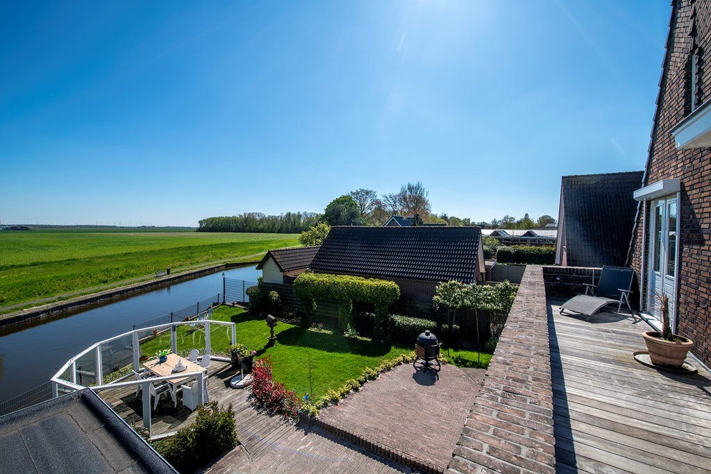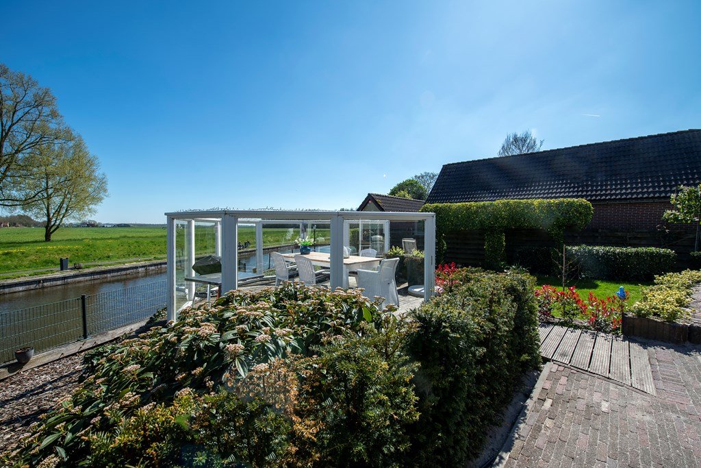 Via de tuindeuren in de living komt u op een kleine, prettige veranda met uitzicht over de tuin, het water en het ruime landschap.