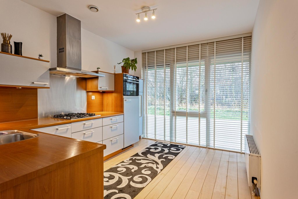 De toiletruimte beschikt over een toilet en een fonteintje. De royale lichte woonkamer beschikt over een vaste kast met veel bergruimte. Via openslaande deuren heeft u toegang tot de ruime tuin met berging voorzien van elektra, gelegen op het westen. De tuin heeft een afmeting van circa 40 m2. De woonkeuken is voorzien van een keuken in hoekopstelling met boven- en onderkasten en laden met inbouwapparatuur, te weten; rvs- spoelbak, 4-pits gaskookplaat, afzuigkap, oven/magnetroncombinatie, koelkast en vaatwasmachine. Vanuit de keuken heeft u een prachtig uitzicht over het groen met het riviertje de Molenley.