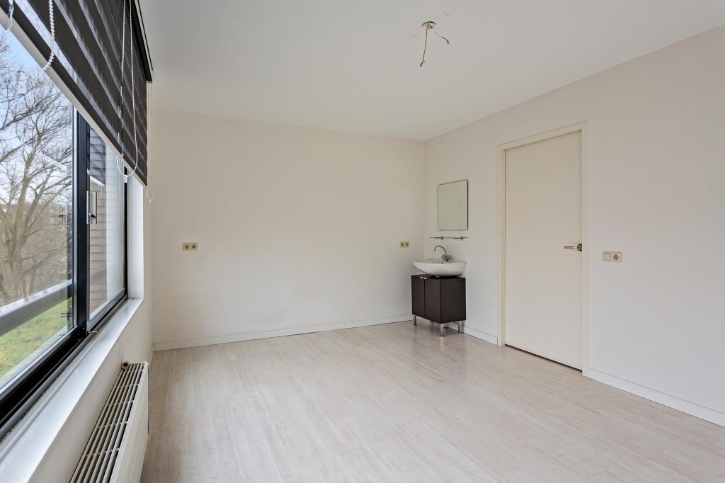 2e verdieping: een overloop, een ruime slaapkamer met eigen wastafel, een praktische C.V.ruimte en een werkstudeer kamer met enorm dakterras.