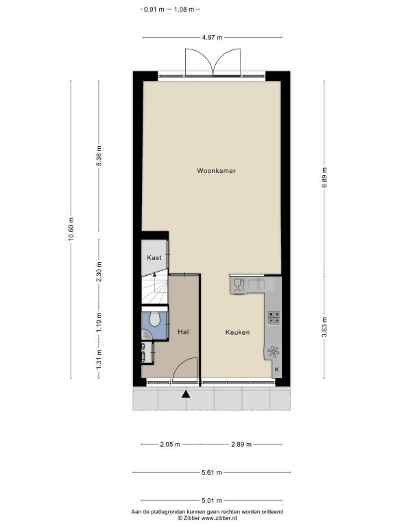 Via de ruime entree/hal met meterkast heeft u toegang tot het toilet, de trapopgang naar de eerste verdieping en de woonkamer met open keuken.